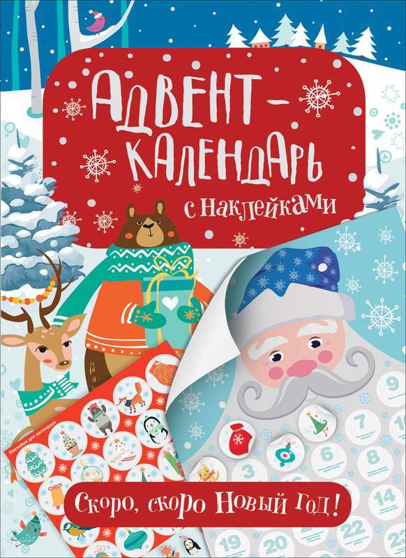 Описание Адвент-календарь с наклейками. Скоро, скоро Новый год! Все описание Адвент-календарь - это популярная занималка для детей, которая делает ожидание Нового года веселым и увлекательным! В книге... Показать описание вы найдете большой новогодний плакат - адвент-календарь, на который ребенок ежедневно, начиная с 1 и заканчивая 31 декабря, будет клеить по одной наклейке. И каждый день ему нужно будет выполнить несложное задание, за которое полагается подарочек. Список заданий, а также наклейки и заготовки для новогодних поделок найдутся под обложкой!