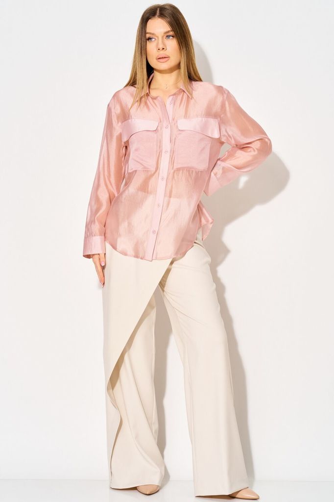 Состав: Вискоза-23%; ПЭ-77%; Стильная блузка от LAIKONY из полупрозрачной струящейся органцы. Модель полуприлегающего силуэта длиной ниже линии бедер. Блузка выполнена с изысканным спущенным плечом, ч... Показать описанието придает ей особую легкость и романтичность. Воротник рубашечного типа, центральная застежка на шесть пуговиц добавляет нотку классики. Детали переда украшены кокетками, а накладные карманы придают блузке современный вид. Спинка с кокеткой и аккуратной складкой по центру, рукава втачные одношовные с манжетами и застежками на пуговицы. Блузка выполнена из магкой вискозной органзы, не тянется. Длина изделия по спинке 69-72 см, длина рукава 55,2-55,8 см в зависимости от размера. Эта блузка — идеальный выбор для любого случая: будь то деловая встреча или вечерняя прогулка. Создайте свой уникальный образ с нашей блузкой и будьте в центре внимания! На фото с нашими брюками L-024. Также будет прекрасно смотреться с брюками L-942-2 и L-914 нашей весенней коллекции.