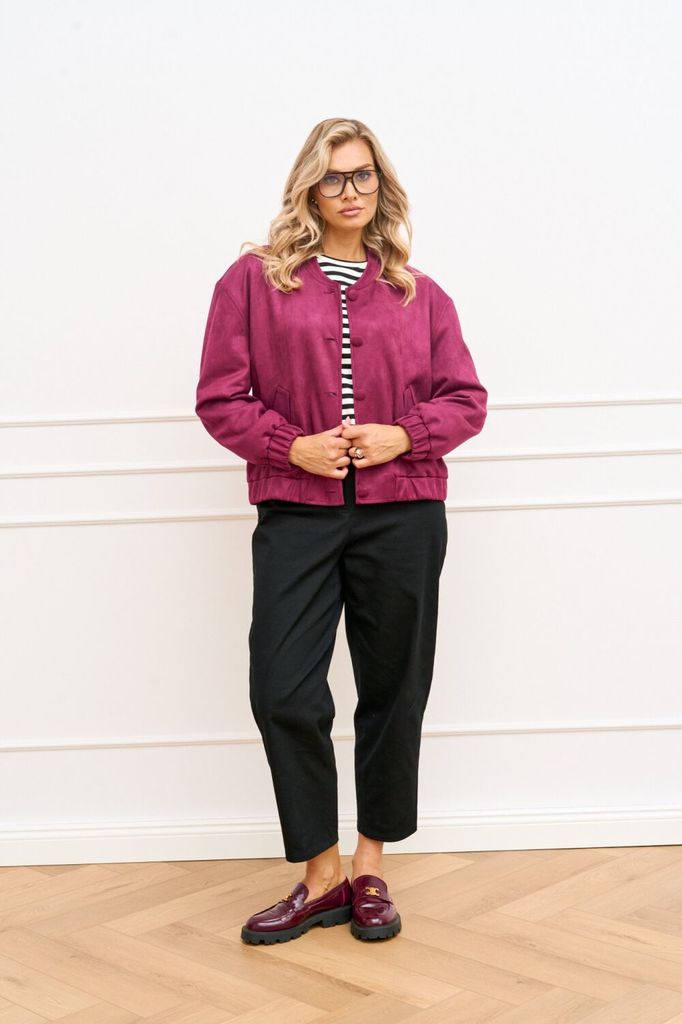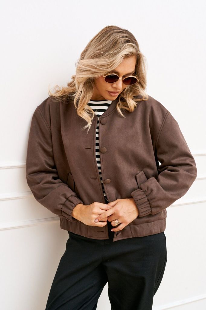 Состав: Вискоза-60%; ПЭ-35%; Эластан-5%; Бомбер женский свободного силуэта на подкладке выполнен из мягкого, приятного в носке замша. Застежка центральная на петли и пуговицы в тон ткани, по горловине... Показать описание воротник-стойка. По полочкам обработан функциональный карман листочка с клапаном. Линя плеча чуть спущена, рукав втачной, низ рукава обработан притачной манжетой с эластичной тесьмой. По низу изделия притачной пояс с эластичной тесьмой для лучшей посадки по фигуре Наименование измерений Размеры (см) Допустимые(см) отклонения +/- 44 46 48 50 52 54 Обхват груди 88 92 96 100 104 108 Обхват бедер 96 100 104 108 112 116 Рост 170 170 170 170 170 170 +/- 1см. Длина спинки 50 50 50 60 60 60 +/- 1см. Ширина спинки 48 48 48 51 51 51 +/- 1см. Ширина изделия на уровне глубины проймы 106 110 114 118 120 124 +/- 1см. Ширина изделия по линии талии 100 104 108 112 116 120 +/- 1см. Ширина изделия в низу 94/100 98/104 102/108 106/112 110/116 114/120 +/- 1см Длина рукава 57 57 57 57 57 57 +/- 1см. Ширина рукава в веху 34 36 38 42 44 46 +/- 1см. Ширина рукава в низу 20/24 20/24 20/ 24 22/ 26 22/ 26 22/ 26 +/- 1см.