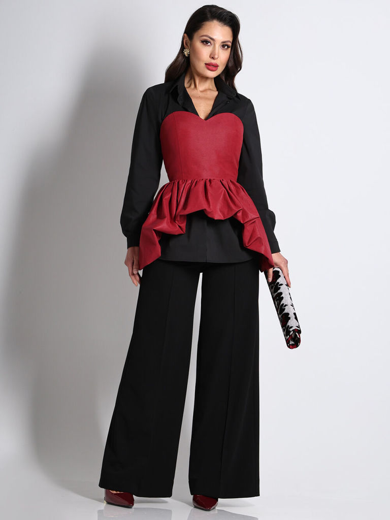 Состав: Блуза- Вискоза-29%; ПЭ-69%; Спандекс-2%; Подкладка- Вискоза-45%; ПЭ-55%; Сезон: Весна Рост: 164 Страна бренда: Беларусь Состав: Блуза: Вискоза-29%; ПЭ-69%; Спандекс-2%; Подкладка: Вискоза-45%;... Показать описание ПЭ-55%; Приталенная блуза из костюмной ткани с рукавами-клёш (приобрести шорты с фото можно по арт. 6554, приобрести юбку-миди к блузе по арт. 6528). Детали: приталенный силуэт с регулировкой по спинке, талевые вытачки и рельефные швы, рукава втачные длинные расклешенные, плечевые накладки, потайная застежка-молния по спинке, на подкладке. Длина по спинке около 62 см в размерах 40-46 и около 63 см в размерах 48-52 см, длина рукава около 63 см