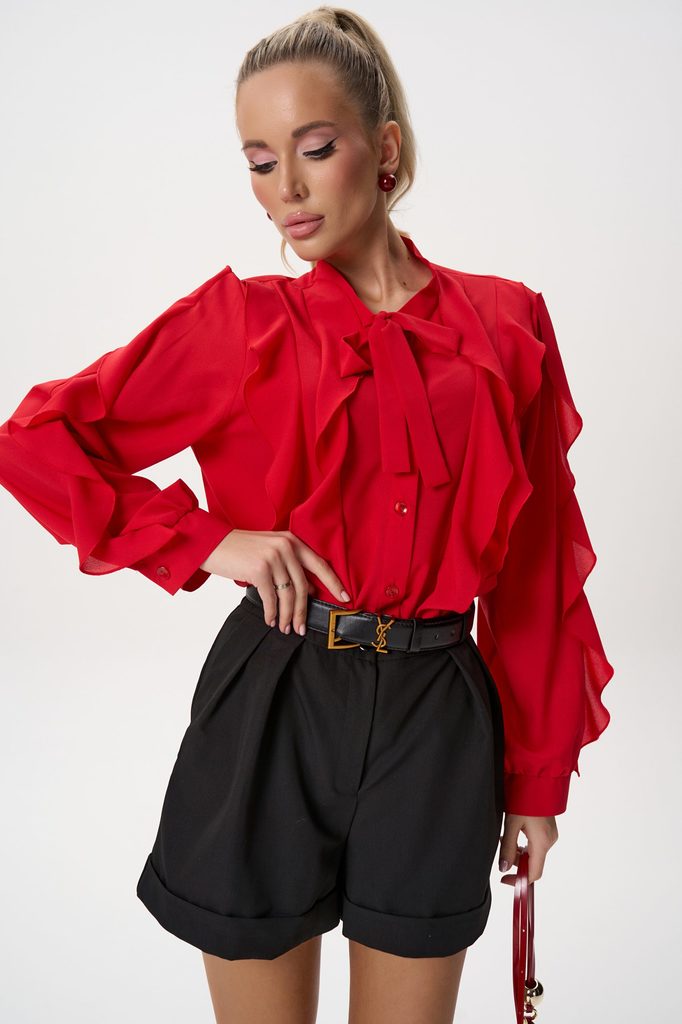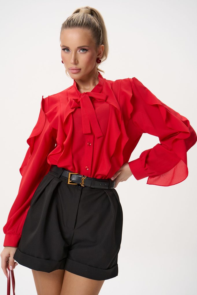 Состав: Хлопок – 100% Описание Нежная блузка с воздушными рюшами Лёгкость, женственность и мягкая романтика в одном образе. Эта блузка выполнена из невесомой ткани с выразительными волнами рюшей, кото... Показать описаниерые создают объём и движение. Модель идеально подойдёт для офиса, встреч или особенных повседневных образов — когда хочется выглядеть элегантно и чувствовать себя комфортно. Детали модели свободный, комфортный силуэт лёгкая фактурная ткань декоративные рюши по всей передней и задней части круглый вырез короткий объёмный рукав нежный розовый оттенок легко комбинируется с брюками, юбками и джинсами