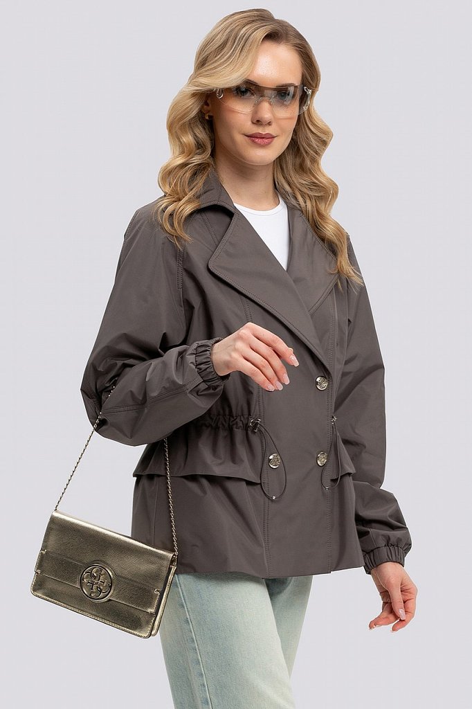 Новинка!!! Ультратонкий утеплитель – экотекстиль, соответствующий термофину плотностью 60, толщина слоя 1 мм. Женская ветровка в элегантном городском стиле. Покрой рукава реглан, умеренный объем, прям... Показать описаниеой силуэт. По линии талии кулиска с баской. Воротник стояче-отложной с лацканами. Внутренний карман на подкладке изделия. Манжет рукава с резинкой. Застежка двойной ряд кнопок. Ткань плащевая с водоотталкивающей пропиткой, 100% полиэстер.