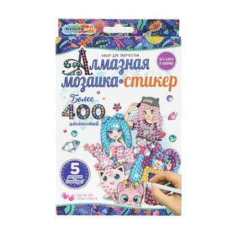 Набор для детского творчества алмазная мозаика-стикер Аниме ТМ Мульти Арт отличный подарок для ребёнка, который будет способствовать развитию его творческих способностей. Особенности и комплектация:... Показать описание - более 400 деталей - 5 мозаик в наборе - комплект страз - ёмкость для страз - стилус - клеевая подушечка - без клея и ножниц - инструкция При помощи этого набора маленькая умелица сможет создать яркие самоклеящиеся картинки-мозаики, декорированные стразами. Готовой поделкой-стикером можно украсить любой предмет, например: чехол для мобильного телефона, сумку, тетрадь и т. п. Творческие занятия с алмазной мозаикой ТМ Мульти Арт обладают успокаивающим действием, а также развивают: - творческое мышление - цветовое восприятие - усидчивость - внимание - аккуратность Размер листа: 15 х 21 см. Материал: картон + пластмасса. Рекомендовано детям от 3-х лет.