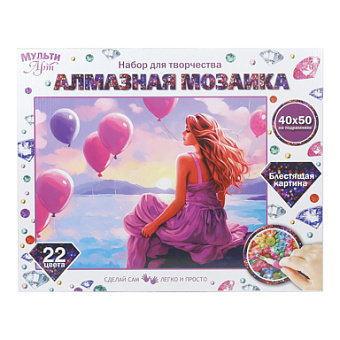 401161 Алмазная мозаика 40*50 с подрамником девушка у моря с шарами МУЛЬТИ АРТ в кор.20штВопросы по товару