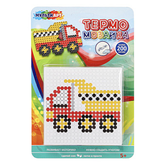 Набор для детского творчества термомозаика Тачки ТМ Мульти Арт - отличный подарок для ребёнка: - более 200 деталей - в комплекте всё необходимое: пластиковая основа, цветные бусины, пинцет, бумага дл... Показать описаниея проглаживания - необходимо гладить утюгом - любимый персонаж Из разноцветных бусин, входящих в данный набор, юный мастер сможет собрать фигурку мультяшной гоночной машинки. Чтобы зафиксировать рисунок, бусины нужно накрыть специальной пергаментной бумагой и прогладить нагретым утюгом. ВНИМАНИЕ: проглаживать поделку может только взрослый! Получившуюся фигурку можно будет использовать для дальнейшей игры. Творческие занятия с термомозаикой ТМ Мульти Арт развивают: - фантазию и воображение - мелкую моторику - креативное мышление - внимание - усидчивость Размер: 11 х 11 см. Материал: пластмасса. Рекомендовано детям старше 5-ти лет.