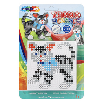 Набор для детского творчества термомозаика Собака ТМ Мульти Арт - отличный подарок для ребёнка: - более 200 деталей - в комплекте всё необходимое: пластиковая основа, цветные бусины, пинцет, бумага д... Показать описаниеля проглаживания - необходимо гладить утюгом - милый персонаж Из разноцветных бусин, входящих в данный набор, юный художник сможет собрать фигурку забавного пёсика. Чтобы зафиксировать рисунок, бусины нужно накрыть специальной пергаментной бумагой и прогладить нагретым утюгом. ВНИМАНИЕ: проглаживать поделку может только взрослый! Получившуюся фигурку можно будет использовать для дальнейшей игры. Творческие занятия с термомозаикой ТМ Мульти Арт развивают: - фантазию и воображение - мелкую моторику - креативное мышление - внимание - усидчивость Размер: 11 х 11 см. Размер упаковки: 15 х 22 см. Материал: пластмасса. Рекомендовано детям старше 5-ти лет.