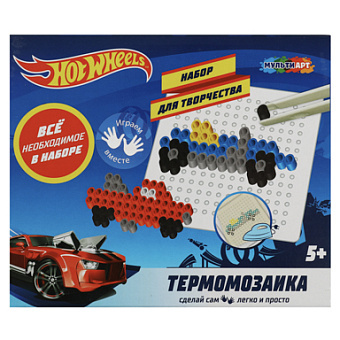 Набор для детского творчества - термомозаика Hot Wheels ТМ Мульти Арт - отличный подарок для развития творческих способностей вашего ребёнка: - в комплекте всё необходимое: пластиковая основа, комплек... Показать описаниет цветных бусин, 2 карточки-шаблоны, 2 кальки, пинцет - инструкция на обороте - красочная упаковка на любимую тематику Собирая эту мозаику, маленький творец сможет сложить из цветных бусин 2 вида крутых гоночных машинок. Чтобы зафиксировать рисунок, получившуюся заготовку нужно прогладить утюгом через кальку. После того, как фигурка остынет, её можно будет использовать для декора или в качестве игрушки. Игровые занятия с термомозаикой ТМ Мульти Арт развивают: - фантазию и воображение - моторику - цветовосприятие - внимание - усидчивость Размер упаковки: 6 х 18 х 15 см. Материал: пластмасса. Рекомендовано детям от 5-ти лет.