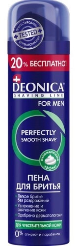 DEONICA FOR MEN ПЕНА ДЛЯ БРИТЬЯ ДЛЯ ЧУВСТВИТЕЛЬНОЙ КОЖИ - белая пена, лёгкий свежий ароматОсвежающая формула без спирта и парабенов бережно ухаживает за чувствительной кожей, обеспечивает гладкое и ко... Показать описаниемфортное бритье, дарит приятное ощущение прохлады.Пена обеспечивает легкое бритье без раздражений.Увлажняет и смягчает кожу во время бритья.Формула одобрена дерматологами.Специальные особенности: без спирта и парабенов.