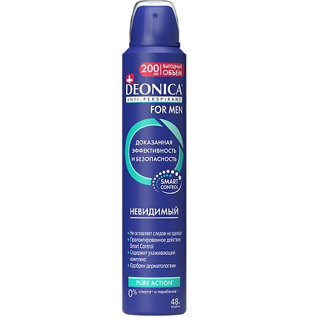 DEONICA FOR MEN 200мл Дезодорант для тела Невидимый спрей*6Вопросы по товару