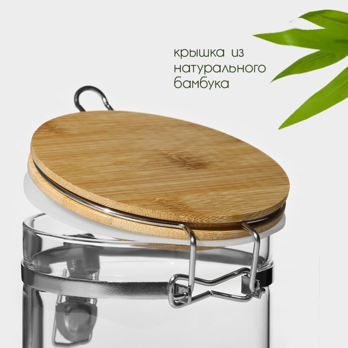 Банка для сыпучих BellaTenero «Эко», 950 мл, 10?15.5 см, с бамбуковой крышкой, стекло, прозрачная Вопросы по товару