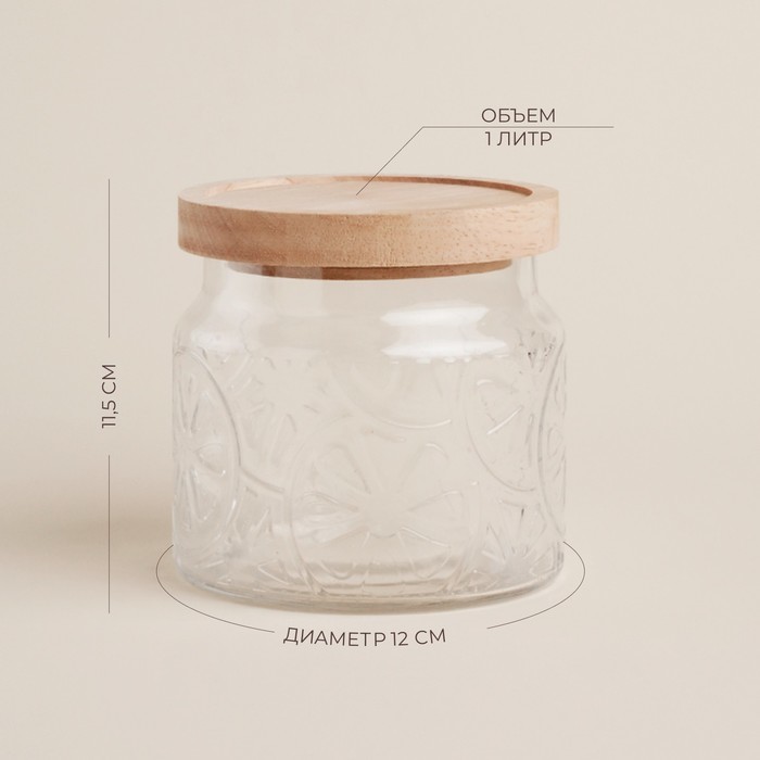Банка для сыпучих SL Home «Валенсия», 1 л, 12?11.5 см, с деревянной крышкой, стекло, прозрачная
