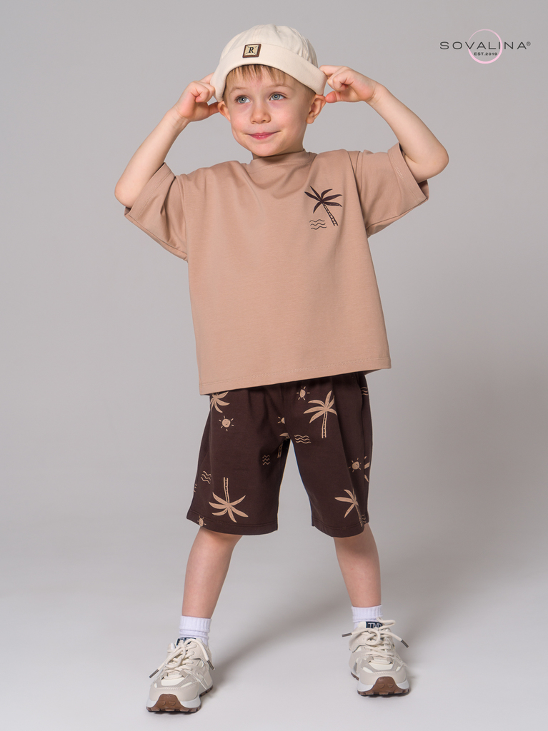 Летний хлопковый комплект для мальчиков бренда SOVAlina. Детский спортивный костюмчик двойка состоит из легкой и широкой футболки с принтом. Она выполнена из тонкого и прочного трикотажа, что делает е... Показать описаниее идеальной на каждый день для встреч с друзьями, путешествий, на дачу. Модный комплект также включает шорты на резинке и с карманами, имеют комфортную посадку для активного отдыха, спортивных игр и мероприятий. Майка с короткими рукавами и актуальным дизайном добавляет стильный акцент этому комплекту. Свободная футболка оверсайз изготовлена из хлопка и обеспечивает максимальный комфорт и свободу движений, подойдет и для дома, так как это дышащий материал. Этот тонкий и легкий комплект также подходит как форма для тренировок, физкультуры. Выполнен из высококачественных материалов, производства Турция, чтобы обеспечить долговечность и комфорт. Задуман специально - стандартные шорты и большая оверсайз футболка.