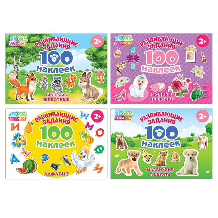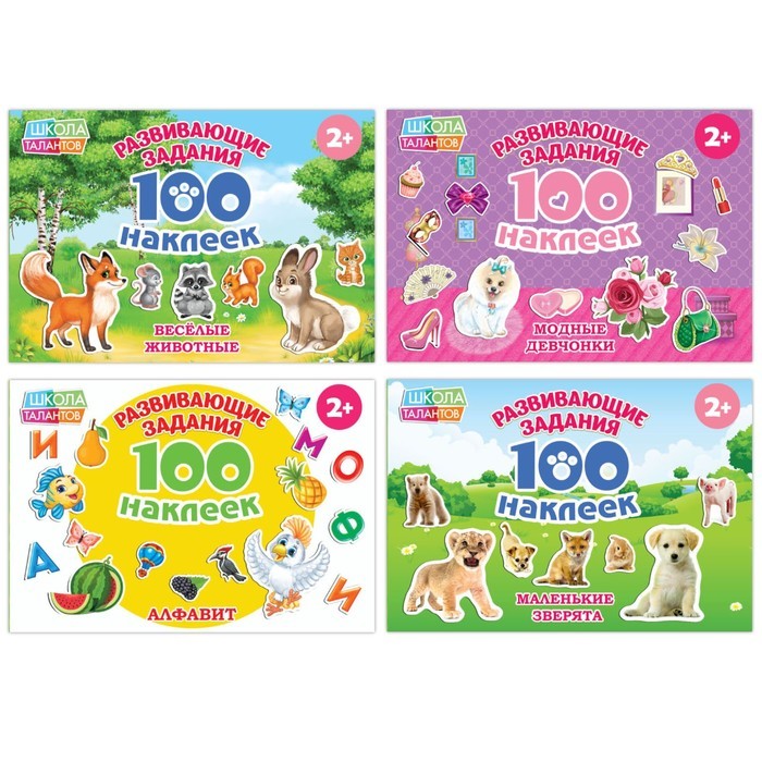 С набором обучающих наклеек познавать окружающий мир ребёнку будет легко и интересно. Малыш подружится с весёлыми зверятами и птичками, обучится основам арифметики и алфавиту. В каждом альбоме предста... Показать описаниевлено 100 наклеек с красочными изображениями животных, растений, букв, фруктов, овощей и других важных предметов окружающего мира. Яркие картинки положительно влияют на визуальное восприятие малыша, память и воображение. На каждой странице находятся задания, где необходимо приклеить картинки с соответствующими персонажами или их определённое количество. Упражнения положительно влияют на развитие мелкой моторики, внимания, речи и расширение кругозора. Украсьте наклейками любой уголок вашего интерьера — порадуйте юного гения! Рекомендовано для детей от 2 лет. Комплектация * 100 наклеек «Мир Динозавров»</2105820/100-nakleek-mir-dinozavrov-12-stranic/> * 100 наклеек «Животные со всего света»</2105821/100-nakleek-zhivotnye-so-vsego-sveta-12-stranic/> * 100 наклеек «Цвета»</2105825/100-nakleek-cveta-12-stranic/> * 100 наклеек «Транспорт»</2105822/100-nakleek-transport-12-stranic/>