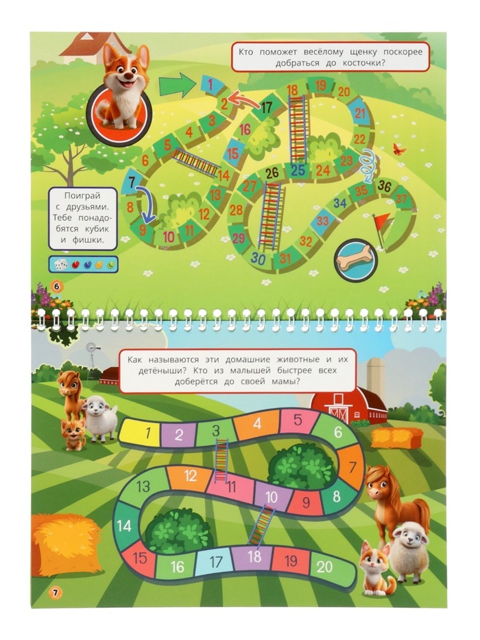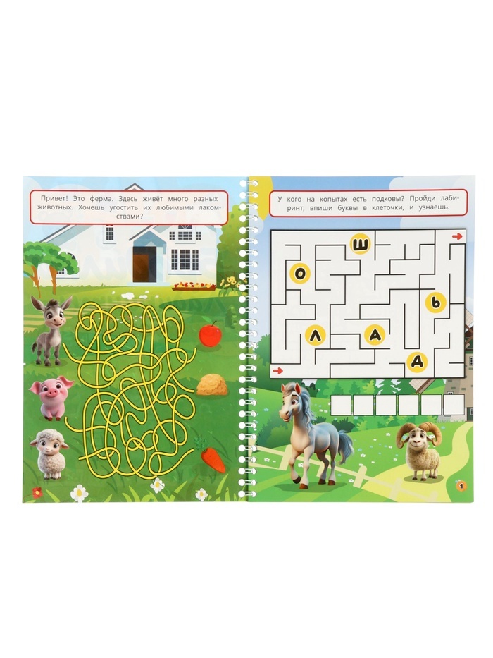 Благодаря пружинному переплёту книга лежит ровно на столе, не захлопывается и не мнётся — идеально для активных малышей. А яркие иллюстрации и разнообразные задания удерживают внимание дольше, чем экр... Показать описаниеан, но без усталости для глаз. Почему дети просят «ещё одну страничку»: * Развивает логику и внимание. Нужно проследить маршрут, найти отличия или собрать цепочку — всё это тренирует мышление в игровой форме. * Укрепляет мелкую моторику. Проведение линий, обведение, соединение точек — полезная подготовка к письму. * Расширяет знания о животных. Ребёнок узнаёт, кто живёт в джунглях, кто в океане, а кто в тундре — без зубрёжки, через игру. * Даёт спокойное занятие без гаджетов. Идеально для дороги, ожидания или тихого часа. Для кого подходит: * Детям 4–8 лет — для развития мышления и расширения кругозора в игровой форме. * Родителям, которые ищут умную альтернативу планшету. * Воспитателям и педагогам — как материал для индивидуальных и групповых занятий. * Всем, кто хочет подарить не просто книгу, а настоящую игру с пользой. 30 страниц — это не просто сборник заданий. Это приглашение в увлекательное путешествие по миру животных, где каждый поворот — маленькое открытие.