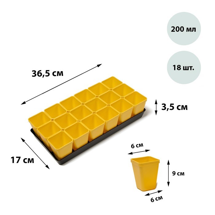 Набор для рассады: стаканы по 320 мл (18 шт.), поддон 51 х 26 см, Greengo Вопросы по товару