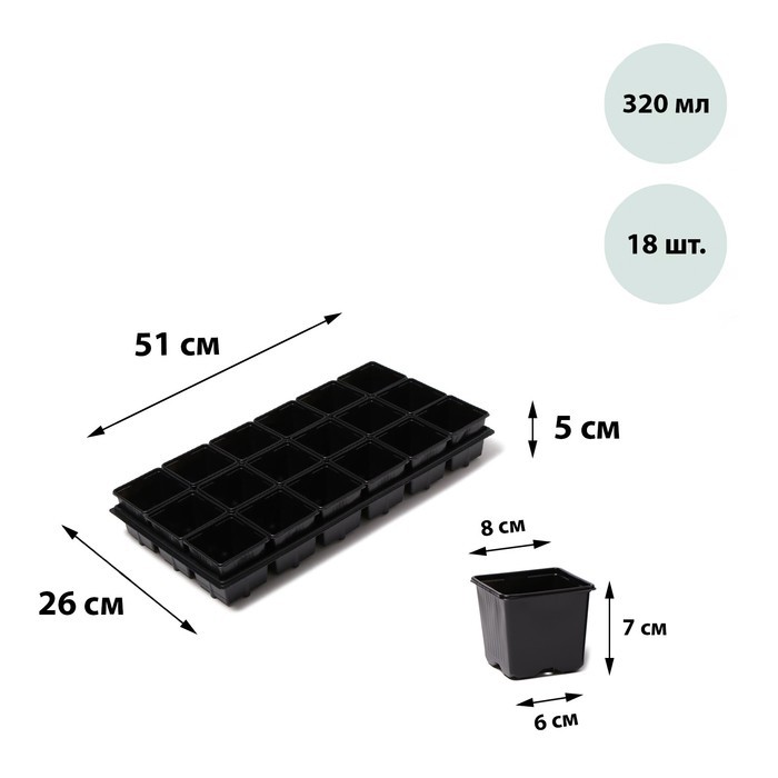 Набор для рассады: стаканы по 320 мл (18 шт.), поддон 51 х 26 см, Greengo