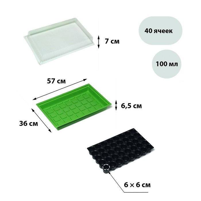 Набор для рассады: торфяной горшок 6 ? 6 см, кассета на 40 ячеек, Greengo