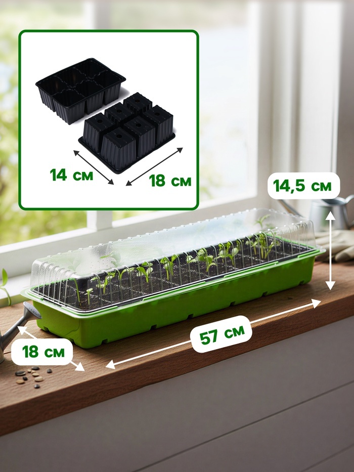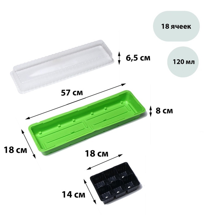[Минипарник122]Набор для рассады с торфяными таблетками 24 шт. — компактная система для проращивания семян и выращивания молодых растений. Все компоненты подобраны для совместного использования. * 24 ... Показать описаниеторфяные таблетки диаметром 4.1 см: подходят для культур с небольшими семенами. При увлажнении увеличиваются в объёме, сохраняя форму. * Кассета на 24 ячейки по 50 мл: каждая ячейка соответствует размеру торфяной таблетки. Объёма достаточно для начального этапа развития растений. * Пластиковый поддон: собирает излишки воды при поливе и сохраняет чистоту на поверхности. Поддон обеспечивает устойчивость кассеты. Для экономного размещения: набор подходит для садоводов с ограниченным пространством для рассады. Компактные размеры ячеек и таблеток позволяют разместить много растений на маленькой площади. Решение оптимально для тех, кто выращивает большое количество рассады на начальном этапе. Применение Конструкция парника не предусматривает герметичную фиксацию крышки на основании. Она просто кладётся сверху и никак не крепится. Это нужно для того, чтобы сохранялся приток кислорода к рассаде. После использования сохраните изделие до следующего сезона.