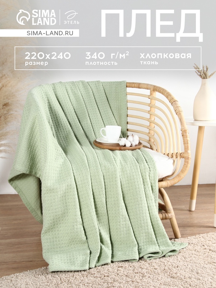 Плед «Этель» Waffle, 220?240 см, 340 г/м?, оливковыйПлед «Этель» Waffle, 220?240 см, 340 г/м?, оливковыйПлед «Этель» Waffle, 220?240 см, 340 г/м?, оливковый