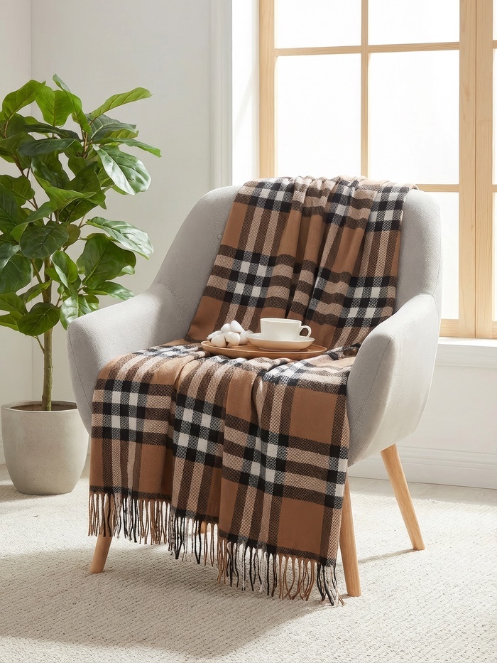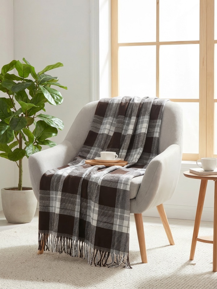 Плед «Метро» 170?210 см, белый/бежевый/коричневый