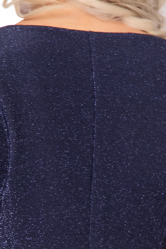 Артикул: П7930. Ткань: трикотаж с люрексом, низ - трикотаж "Скуба". Состав: 95% п/э, 5% эластан. Цвет: синий, черный.. Вид застежки: без застёжки. Силуэт: полуприлегающий. Карманы: отсу... Показать описаниетствуют. Длина изделия по спинке: 44-46/ 88 см, 48-50/ 89 см, 52/ 90 см. Рост модели: 170 см. Элегантное платье подходит для создания праздничного образа. Оно строгое, при этом наполнено женственными элементами, которые украшают изделие. Легкое мерцание подарит чувство праздника! Рукав короткий, втачной. По низу платья разрез в боковом шве. Платье без подклада. Уход за изделием: ручная стирка до 30 градусов; нельзя отбеливать; деликатный отжим; гладить при t не более 110 С; гладить с изнанки. *Допуск отклонения длины при массовом производстве 1-3 см является нормой.