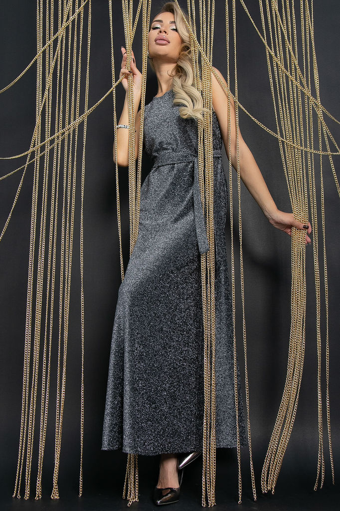 Артикул: П11757. Тип ткани: синтетическая. Состав: 95% полиэстер, 5% эластан. Материал: трикотаж с люрексом. Цвет: темное серебро. Принт: отсутствует. Длина: макси. Вид застежки: без за... Показать описаниестёжки. Силуэт: А-силуэт. Карманы: отсутствуют. Подкладка: отсутствует. Декоративные элементы: отсутствуют. Длина по спинке от верхней точки плеча: 46-56/ 136 см. Размер изделия на модели: 44 Рост модели: 170 см. Вечернее платье макси-длины, выполненное из трикотажа с люрексом — это настоящая находка для любителей элегантности и стиля! Благодаря своему универсальному крою, оно станет вашим верным спутником на любом торжественном мероприятии. Чтобы сделать образ более выразительным, дополните его каблуками, аксессуарами и, при желании, пиджаком. В комплект входит пояс из той же ткани, который придаст образу завершенность и подчеркнёт вашу изящную талию. Уход за изделием: ручная стирка до 30 градусов; нельзя отбеливать; отжим запрещён; гладить при t не более 110 С; гладить с изнанки. Внимание! Рекомендуем ориентироваться на размерную сетку и выбирать свой привычный размер, согласно размерной таблице. *Допуск отклонения длины при массовом производстве 1-3 см является нормой.