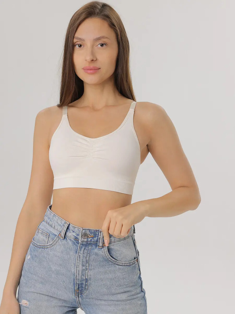 Я прекрасна! Бесшовный бюстгальтер без пуш-ап и каркасов - это женское нижнее белье невероятно удобно и не заметно под одеждой. Топ майка на бретелях имеет съемные чашки без пуш-ап. Мягкий топ с регул... Показать описаниеируемыми бретелям, обладает свойством анатомической поддержки груди.