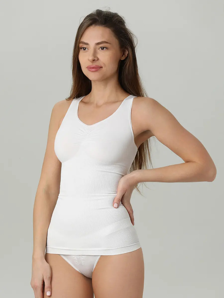 Я прекрасна! Утягивающая бесшовная майка для женщин прекрасно подходит для повседневной носки. Отсутствие швов обеспечивает комфорт даже для чувствительной кожи и позволяет носить ее под облегающей од... Показать описаниееждой. Специальные переплетения способствуют лучшей поддержке груди, корректируют линию талии. Эластичность изделия облегчает подбор размера. Модель выполнена из микрофибры - материала, который обеспечивает хороший воздухообмен, устойчив к механическим и химическим воздействиям при стирке. Подходит для ежедневного применения и занятий спортом