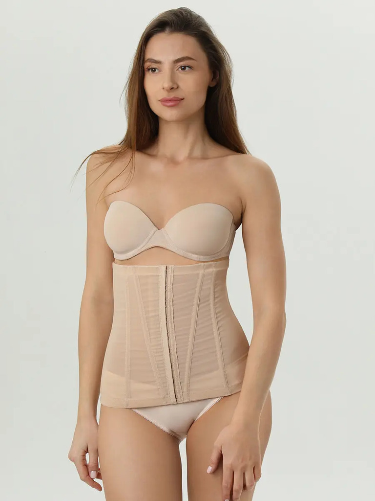 Я прекрасна! Пояс-корсет утягивающий превосходно корректирует фигуру в области талии. Подходит как для повседневного использования, так и для коррекции фигуры в период послеродового восстановления. За... Показать описание счет десяти упругих косточек по высоте всего корсета формируется привлекательный силуэт, подтягивается живот и выравнивается осанка. Три ряда крючков позволяют добиться нужной степени утяжки. Эластичная тесьма с силиконовой полоской по верхнему краю аккуратно фиксирует корсет на теле. Изделие выполнено из легкой плотной сетки, которая идеально сочетается даже с тонкими тканями одежды. Не раздражает кожу и обеспечивает хороший воздухообмен.