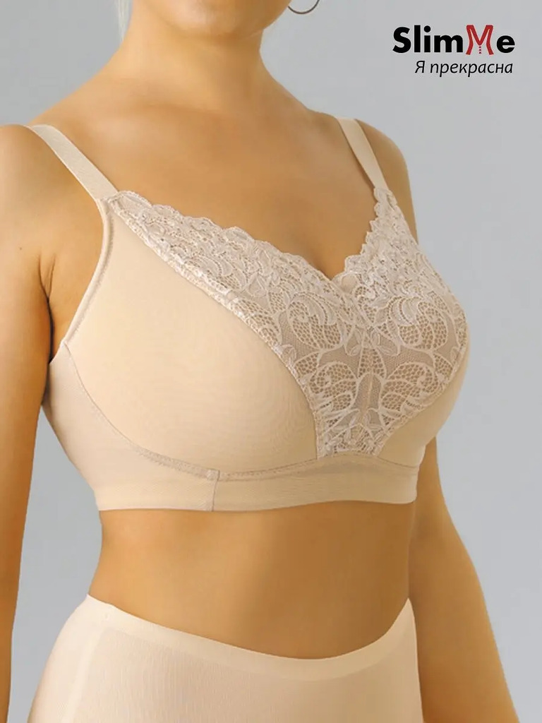 Я прекрасна! Бюстгальтер кружевной женский с мягкой чашкой на косточках прекрасно поддерживает грудь, придает ей красивую форму и не сдавливает ее. Чашка дублирована в нижней части. Лифчик выполнен из... Показать описание мягкого кружевного полотна, пояс дублирован эластичной сеткой. Широкая резинка по низу обеспечивает фиксацию на теле. Модные фигурные бретели с регулятором длины - несъемные. Кружево может отличаться от представленного на фото.