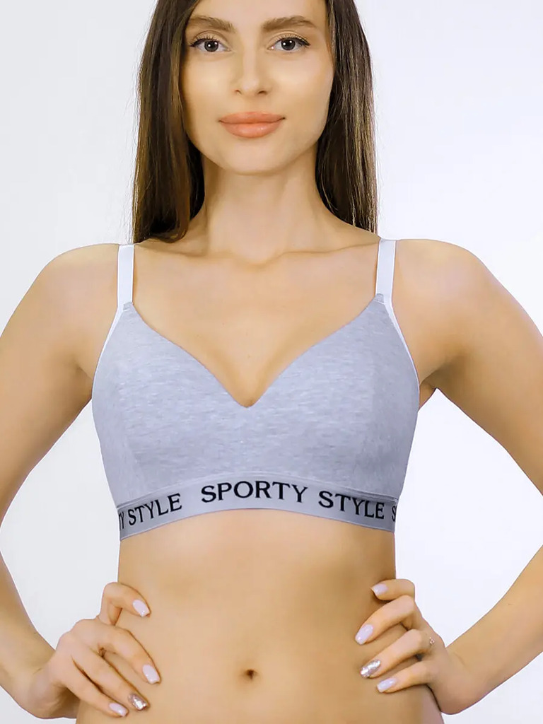 Я прекрасна! Бюстгальтер женский с формованной моночашкой без косточек,прекрасно поддерживает грудь, придает ей красивую форму и не сдавливает ее. Формованная тонкая чашка помогает смоделировать грудь... Показать описание и выделить зону декольте. Спортивный бюстгальтер выполнен из натурального хлопка высокого качества с эластичной резинкой с дизайном.