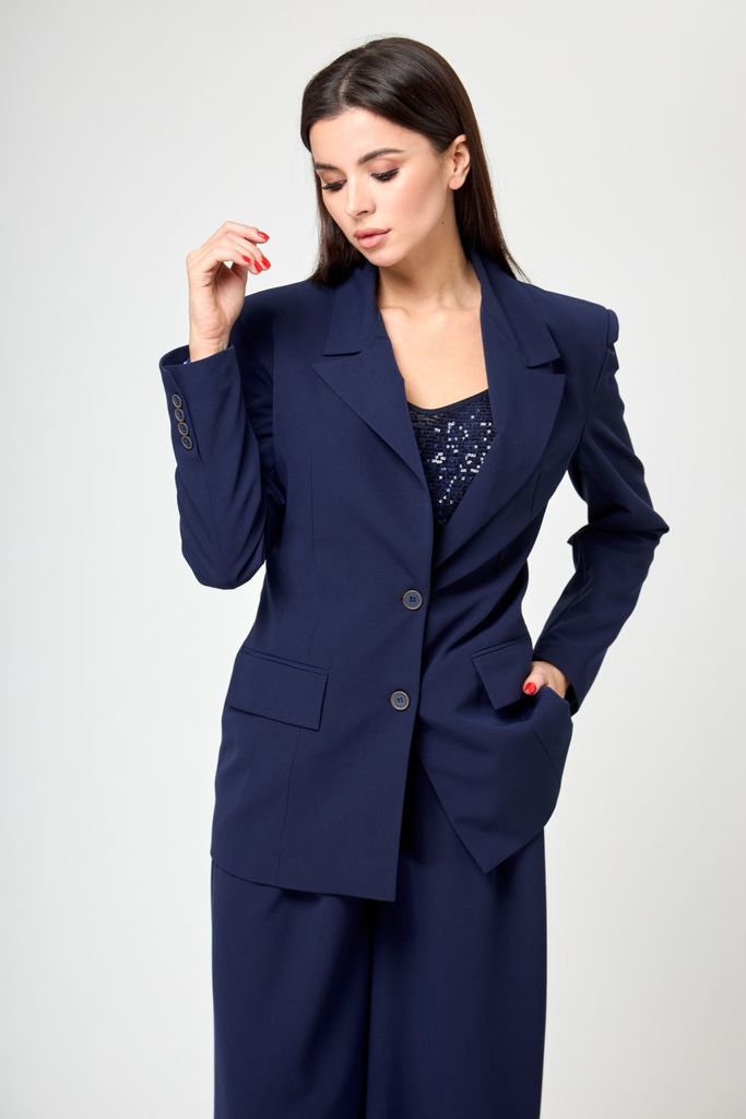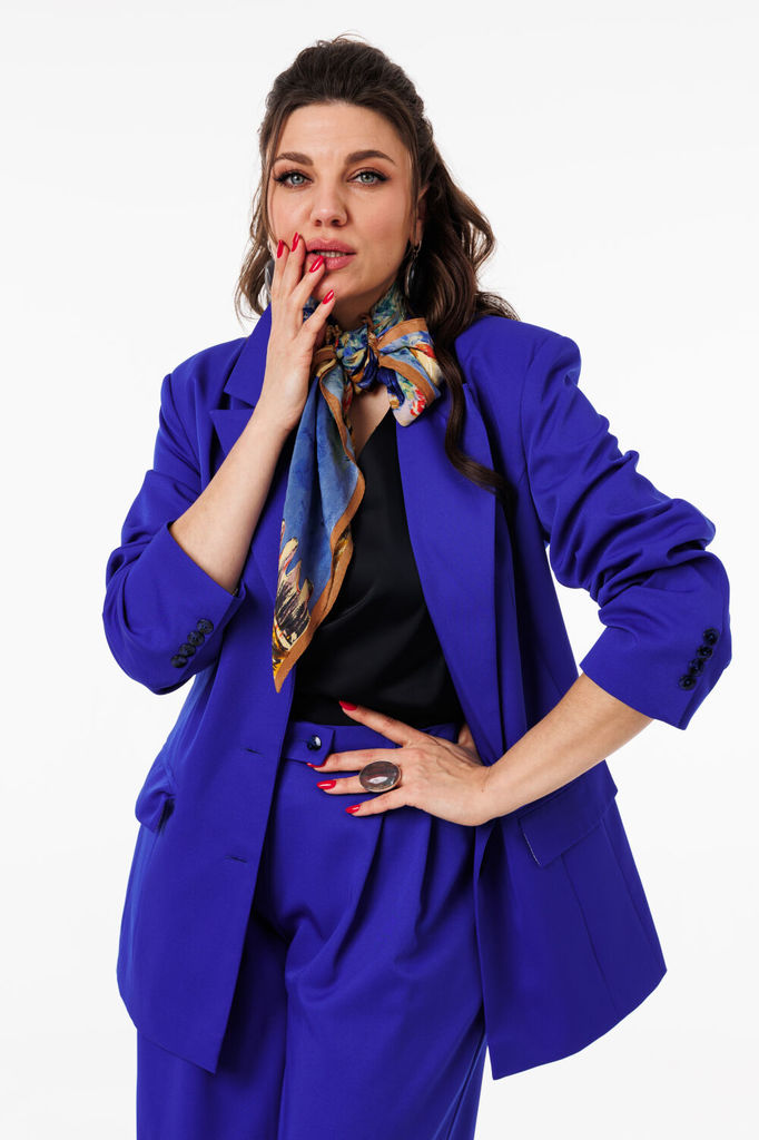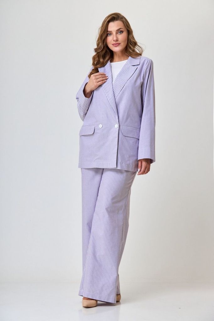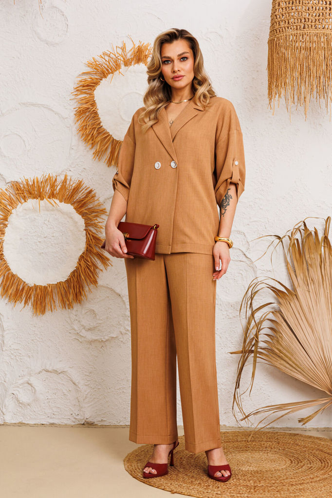 Состав: Вискоза-60%; ПЭ-40%; Сезон: Лето Рост: 164 Страна бренда: Беларусь Состав: Вискоза-60%; ПЭ-40%; Жакет женский оверсайз, длина до середины бедра. Рукав втачной, длинный. По переду прорезные кар... Показать описаниеманы с клапаном. Классический жакетный воротник с отложным лацканом. Жакет на подкладке. Брюки женские прямого силуэта, высокая посадка. По переду боковые карманы и застежка молния. Параллельно боковому шву идут лампасы. Прилегание по спинке достигнуто при помощи талиевых вытачек. Притачной пояс на петлю пуговицу, от бокового шва по спинке на резинке. Костюм несмотря на оверсайз силуэт придаст вашему образу женственности и лёгкости, в нем вы будете чувствовать себя стильно, уверенно и при этом комфортно. При съемке в образе использовали топ Anelli – 767 Замеры: Размер 44: Жакет: ОГ-102; ОТ-100; ОБ-102; ДИ-74; ДР-59 Брюки: ОТ-74;ОБ-97; ДИ-110.5 Размер 46: Жакет: ОГ-106;ОТ-103; ОБ-104; ДИ-74.5; ДР-59 Брюки: ОТ-76; ОБ-101; ДИ-110.5 Размер 48: Жакет: ОГ-108; ОТ-108; ОБ-110; ДИ-75; ДР-60 Брюки: ОТ-83; ОБ-108; ДИ-111 Размер 50: Жакет: ОГ-112;ОТ-112; ОБ-116; ДИ-75.5; ДР-60 Брюки: ОТ-89;ОБ-111; ДИ-111 Размер 52: Жакет: ОГ-118; ОТ-118; ОБ-120; ДИ-76; ДР-60 Брюки: ОТ-92; ОБ-120; ДИ-111 Размер 54: Жакет: ОГ-124; ОТ-124; ОБ-125; ДИ-76.5; ДР-60 Брюки: ОТ-93; ОБ-125; ДИ-111 Размер 56: Жакет: ОГ-127; ОТ-128; ОБ- 129; ДИ-77; ДР-60 Брюки: ОТ-96; ОБ-130; ДИ-111.5 Размер 58: Жакет: ОГ-132; ОТ-132; ОБ-133; ДИ-77.5; ДР-60 Брюки: ОТ-102; ОБ-137; ДИ-111.5