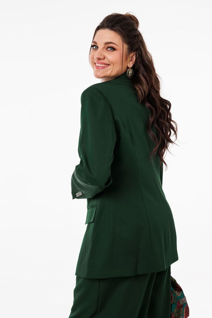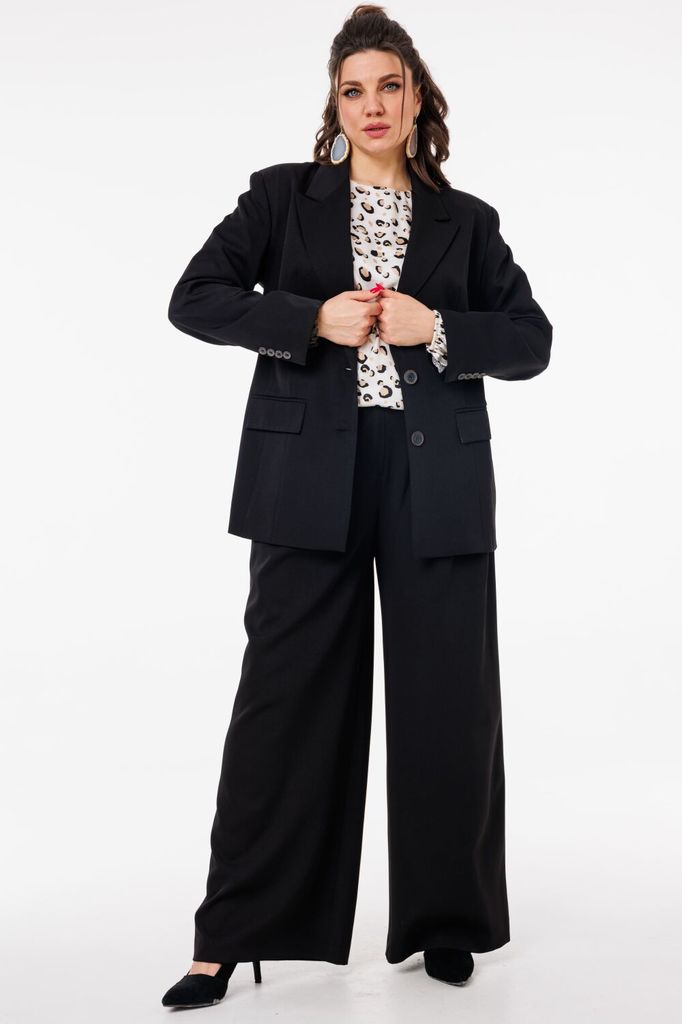 Состав: Костюм- Вискоза-68%; ПЭ-28%; Спандекс-4%; Подкладка- Вискоза-60%; ПЭ-40%; Сезон: Весна Рост: 164 Страна бренда: Беларусь Состав: Костюм: Вискоза-68%; ПЭ-28%; Спандекс-4%; Подкладка: Вискоза-60... Показать описание%; ПЭ-40%; Этот костюм звучит как стильный и универсальный выбор для современного гардероба. Жакет с архитектурным кроем, принтованной подкладкой и функциональными деталями, такими как карманы с клапаном, добавляет ему изысканности и практичности. Брюки-палаццо с высокой посадкой, мягкими складками и боковыми карманами создают элегантный и комфортный силуэт, который подчеркивает фигуру и подходит для разных сезонов. Такой костюм от Анелли можно носить как вместе, создавая цельный образ, так и по отдельности, комбинируя жакет или брюки с другими элементами гардероба. Это делает его универсальным и практичным решением для различных ситуаций. На модели топ под артикулом 1440, брюки отдельно под артикулом 1200 Размер 48: Жакет: ОГ-96; ОТ-88; ДИ-72; ДР-59. Брюки: ОТ-80; ОБ-116; ДИ- 115. Размер 50: Жакет: ОГ-100; ОТ-92; ДИ-72; ДР-59. Брюки: ОТ-84; ОБ-120; ДИ- 115. Размер 52: Жакет: ОГ-104; ОТ-96; ДИ-72,5; ДР-60. Брюки: ОТ-88; ОБ-124; ДИ- 115. Размер 54: Жакет: ОГ-108; ОТ-100; ДИ-73; ДР-60. Брюки: ОТ-92; ОБ-128; ДИ- 115