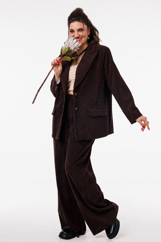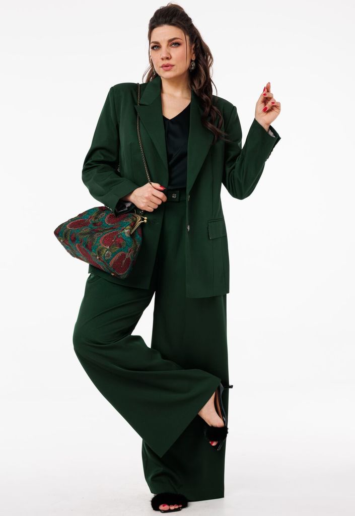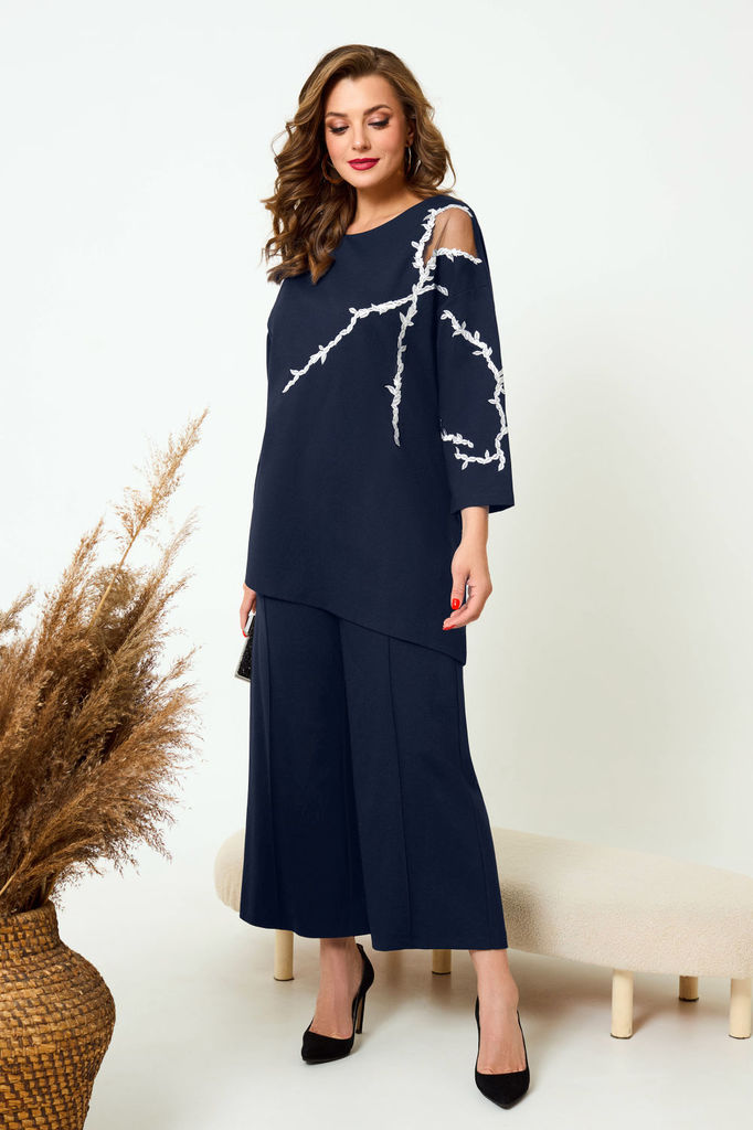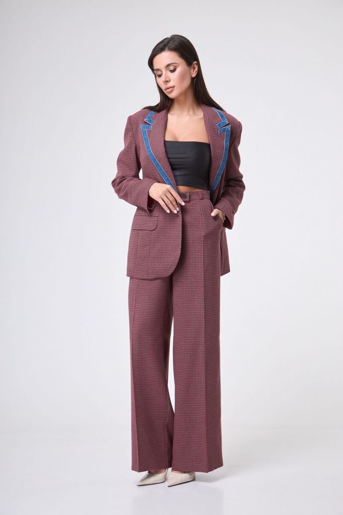 Состав: Костюм- ПЭ-40%; Хлопок-55%; Эластан-5%; Подкладка- Вискоза-60%; ПЭ-40%; Сезон: Весна Рост: 164 Страна бренда: Беларусь Состав: Костюм: ПЭ-40%; Хлопок-55%; Эластан-5%; Подкладка: Вискоза-60%; П... Показать описаниеЭ-40%; Погрузитесь в мир элегантности и стиля с нашим потрясающим костюмом-двойкой, который станет вашим незаменимым союзником в любых ситуациях. Жакет однобортного кроя с изысканной подкладкой, украшенный уникальным принтом, привносит нотку оригинальности в классический силуэт. Функциональные карманы с клапаном добавляют практичности, а отделка бахромой по всему костюму подчеркивает внимание к деталям и создает эффектный акцент. Брюки палаццо на притачном поясе с застежкой-молнией спереди не только подчеркивают вашу фигуру, но и обеспечивают комфорт в течение всего дня. Мягкие складки и широкие штанины делают этот элемент гардероба актуальным для наступившего сезона, добавляя легкости и воздушности вашему образу. Крой костюма от Anelli позволяет легко комбинировать его с водолазками, рубашками и блузами различных стилей, создавая как строго собранные, так и расслабленные образы. Будьте готовы привлекать внимание и вызывать восхищение в любом окружении! На модели представлен топ под артикулом 1440. Замеры: Размер 50: Жакет: ОГ-116; ОБ-116; ОП-38; ДИ-73; ДР-61; Брюки: ОТ-86; ОБ-118; ДИ-111; ширина по низу - 72; Размер 52: Жакет: ОГ-120; ОБ-120; ОП-40; ДИ-73; ДР-61; Брюки: ОТ-90; ОБ-122; ДИ-111; ширина по низу - 74; Размер 54: Жакет: ОГ-124; ОБ-124; ОП-41; ДИ-73; ДР-61; Брюки: ОТ-94; ОБ-126; ДИ-111; ширина по низу - 74; Размер 56: Жакет: ОГ-128; ОБ-128; ОП-41; ДИ-73; ДР-61; Брюки: ОТ-98; ОБ-130; ДИ-111; ширина по низу - 74; Размер 58: Жакет: ОГ-132; ОБ-132; ОП-44; ДИ-73; ДР-61; Брюки: ОТ-102; ОБ-134; ДИ-111; ширина по низу - 74;