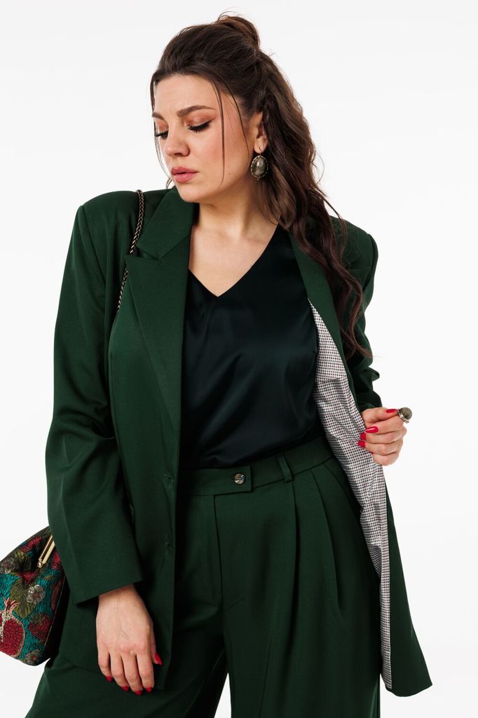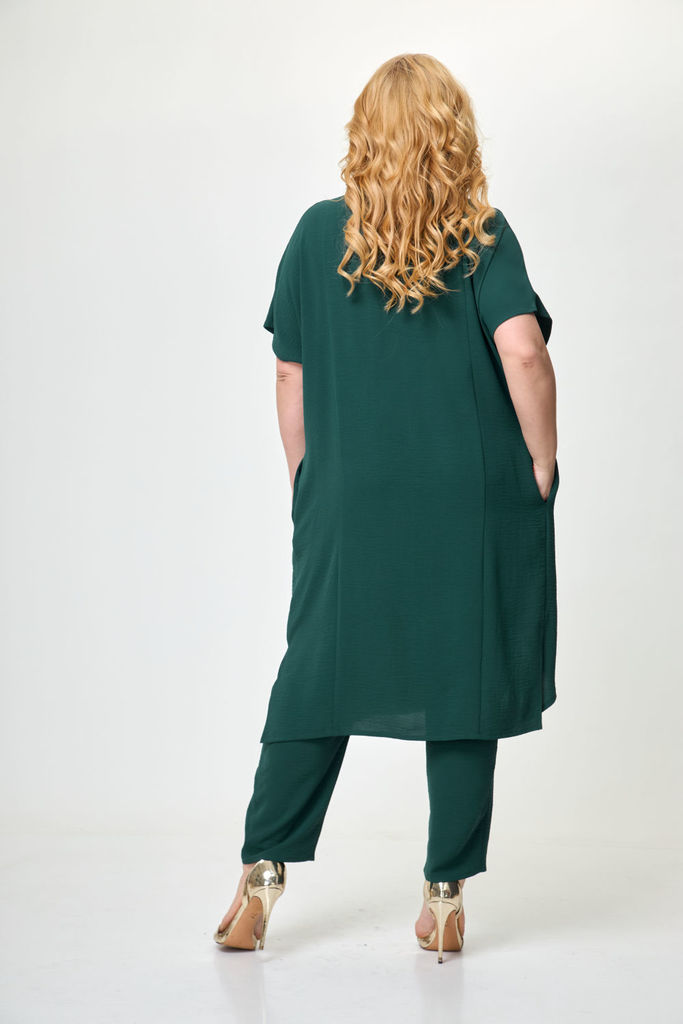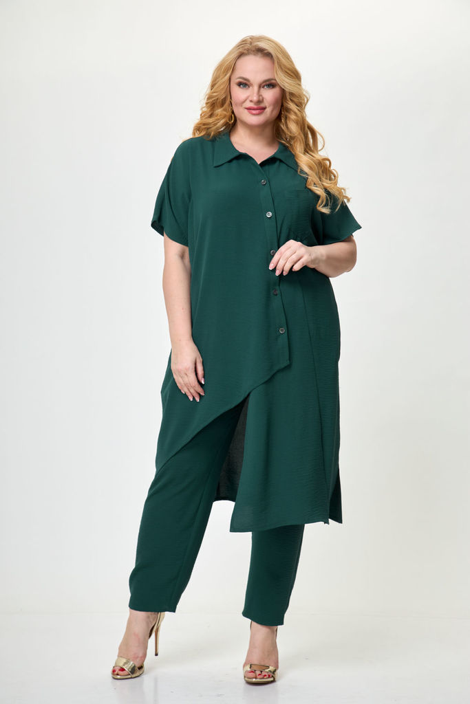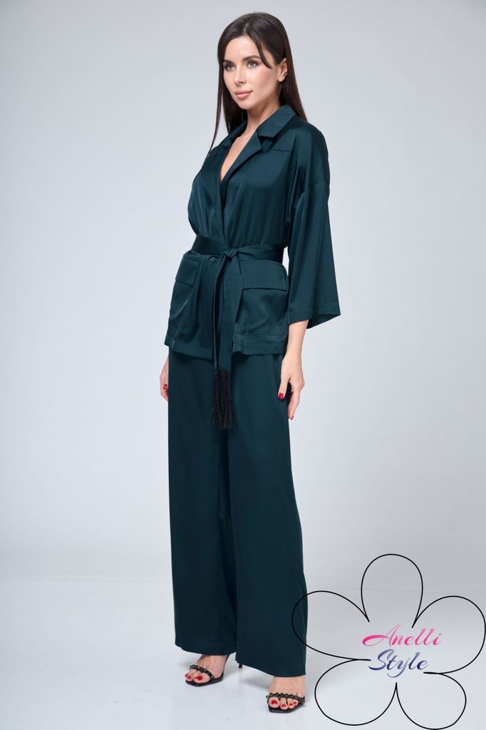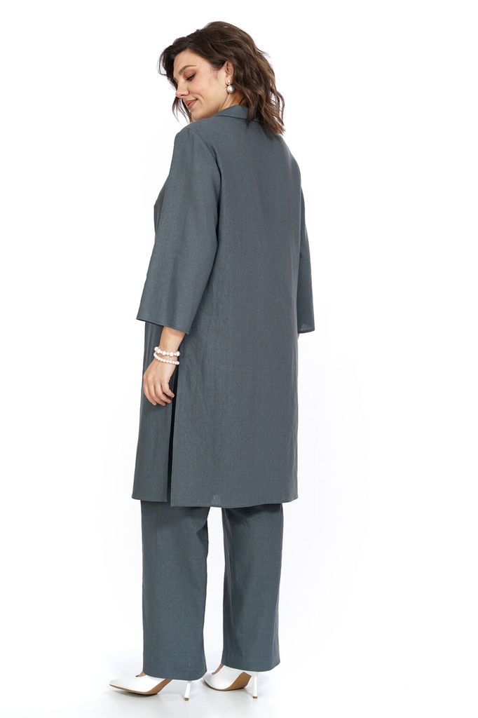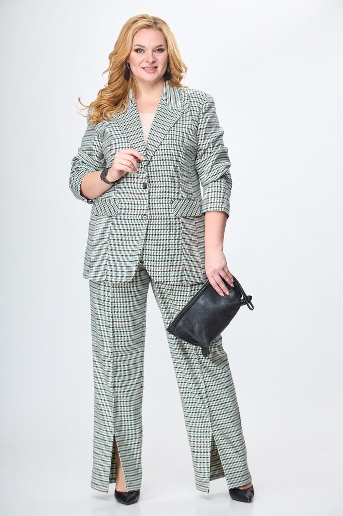 Состав: Хлопок-100%; Сезон: Осень-Зима Рост: 164 Страна бренда: Беларусь Состав: Хлопок-100%; Костюм-двойка брючный. Жакет свободного кроя, длиной до середины бедра. Рукав втачной, длинный. По переду ... Показать описаниепрорезные карманы с клапаном, двубортная застежка. Горловина обработана классическим жакетным воротником с лацканом. Брюки с высокой посадкой, длинные, расширенные к низу. По переду боковые карманы и застежка на гульфик с молнией. Пояс от бокового шва по спинке на резинке, по переду застежка на петлю пуговицу. При помощи съемного пояса можно дополнительно подчеркнуть талию, как в брюках, так и в жакете. При съемке в образе использованы изделия бренда ANELLIstyle – футболка 1015. Вся необходимая информация о производителе указана на этикетке. Цвет на фото может отличаться от цвета изделия вживую из-за разницы освещения и цветопередачи экранов, на которых просматривается изображение. Будем благодарны за ваш отзыв. Это поможет улучшить качество наших изделий. Замеры: Рост фотомодели – 171 см. Размер фотомодели – 50. ОГ-обхват груди; ОТ-обхват талии; ОБ-обхват бедер; ДИ-длина изделия. Размер 46 Жакет: ОГ-106; ОТ-108; ОБ-110; ДИ-72; ДР-62 Брюки: ОТ-76; ОБ-112; ДИ-115 (с поясом), внутренний шов – 87 Размер 48 Жакет: ОГ-110; ОТ-111; ОБ-112; ДИ-73; ДР-62 Брюки ОТ-78; ОБ-116; ДИ-116 (с поясом), внутренний шов – 86 Размер 50 Жакет: ОГ-116; ОТ-117; ОБ-118; ДИ-73; ДР-63 Брюки: ОТ-82; ОБ-118; ДИ-117 (с поясом), внутренний шов – 86 Размер 52 Жакет: ОГ-120; ОТ-121; ОБ-122; ДИ-74; ДР-62,5 Брюки: ОТ-84; ОБ-120; ДИ -116 (с поясом), внутренний шов –85 Размер 54 Жакет:ОГ-124; ОТ-125; ОБ-126; ДИ-75; ДР-63 Брюки: ОТ-86; ОБ-124; ДИ-117 (с поясом), внутренний шов – 86 Размер 56 Жакет: ОГ-128; ОТ-129; ОБ-130; ДИ-75; ДР-63 Брюки: ОТ-88; ОБ-128; ДИ -117 (с поясом), внутренний шов –86