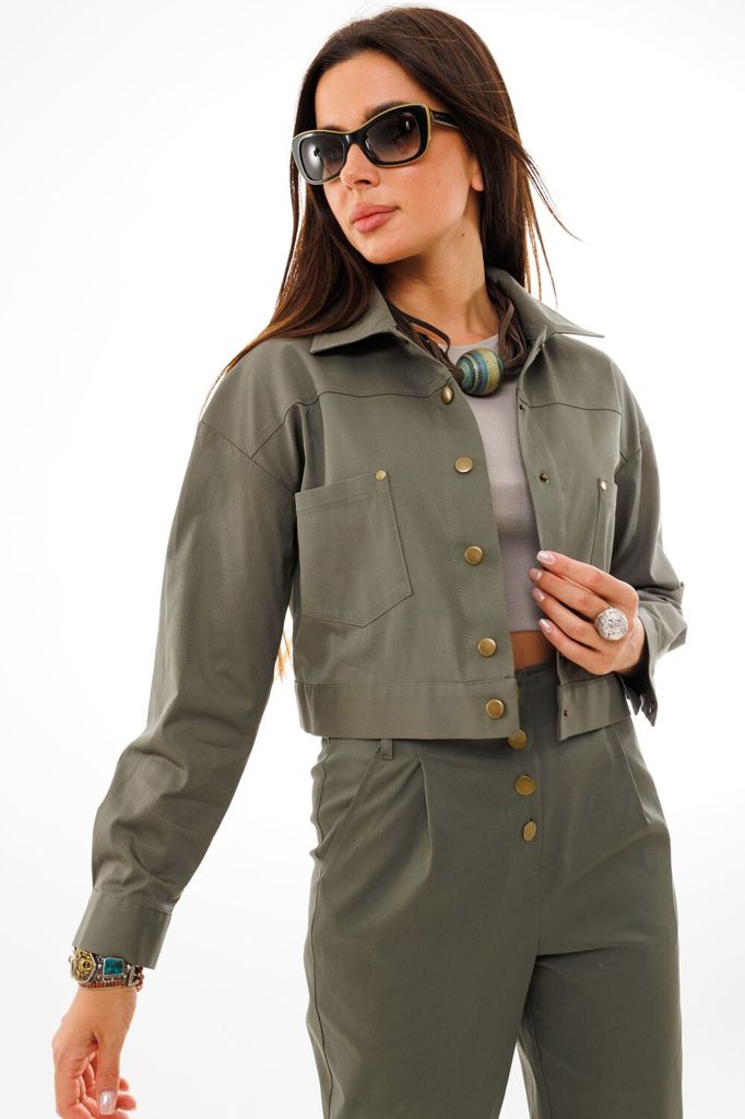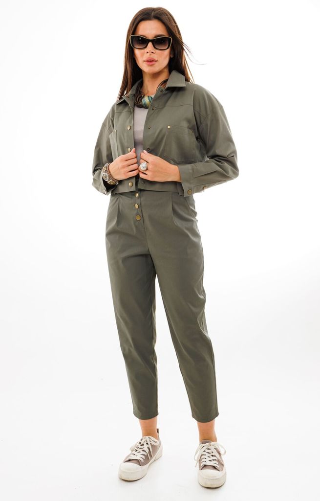 Состав: Вискоза-90%; Эластан-10%; Сезон: Весна Рост: 164 Страна бренда: Беларусь Состав: Вискоза-90%; Эластан-10%; Стильный и модный женский комплект, состоит из бомбера и брюк. Бомбер полуприлегающег... Показать описаниео силуэта, выполнен из высококачественной ткани, по переду с застежкой на молнию. Горловина и низ бомбера декорирован довязом. По переду бомбер с накладными карманами и клапанами с пришивной металлической пуговицей, а также декорирован дизайнерской нашивкой. Рукав цельнокроеный, спущенный, с манжетой и патой, декорированной пришивной пуговицей. Брюки прямые, выполнены из высококачественной ткани, слегка зауженные к низу с манжетой. Пояс брюк полностью на резинке, с завязкой из шнура, выполненной из основной ткани, с металлическими наконечниками. В боковых швах брюк функциональные карманы. Модель удобная и практичная, отлично подойдет для ежедневной носки в жаркое время.