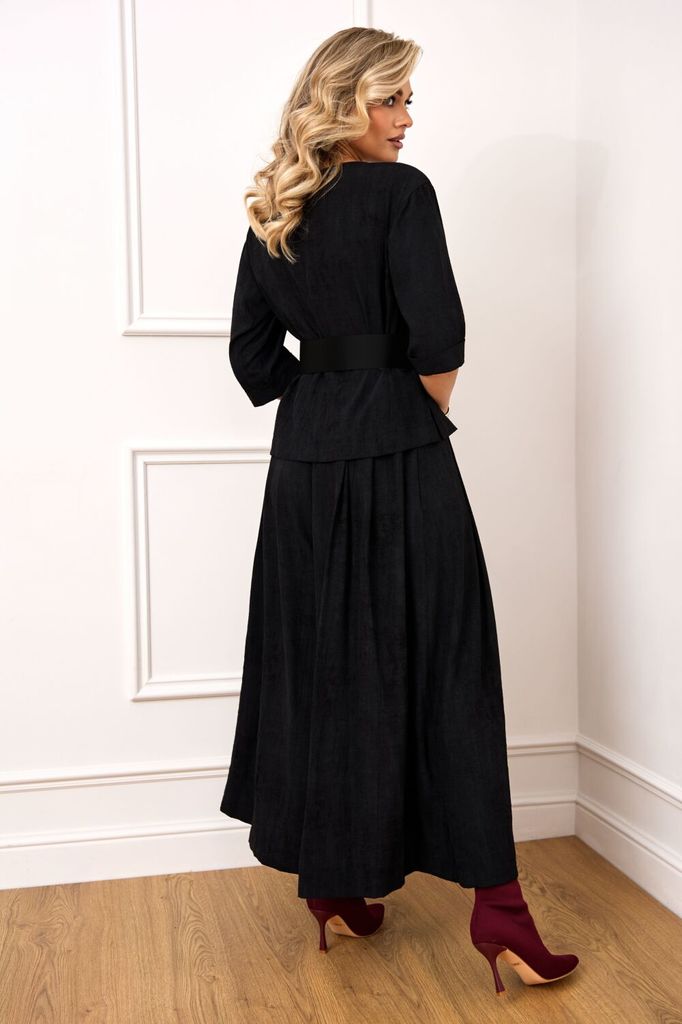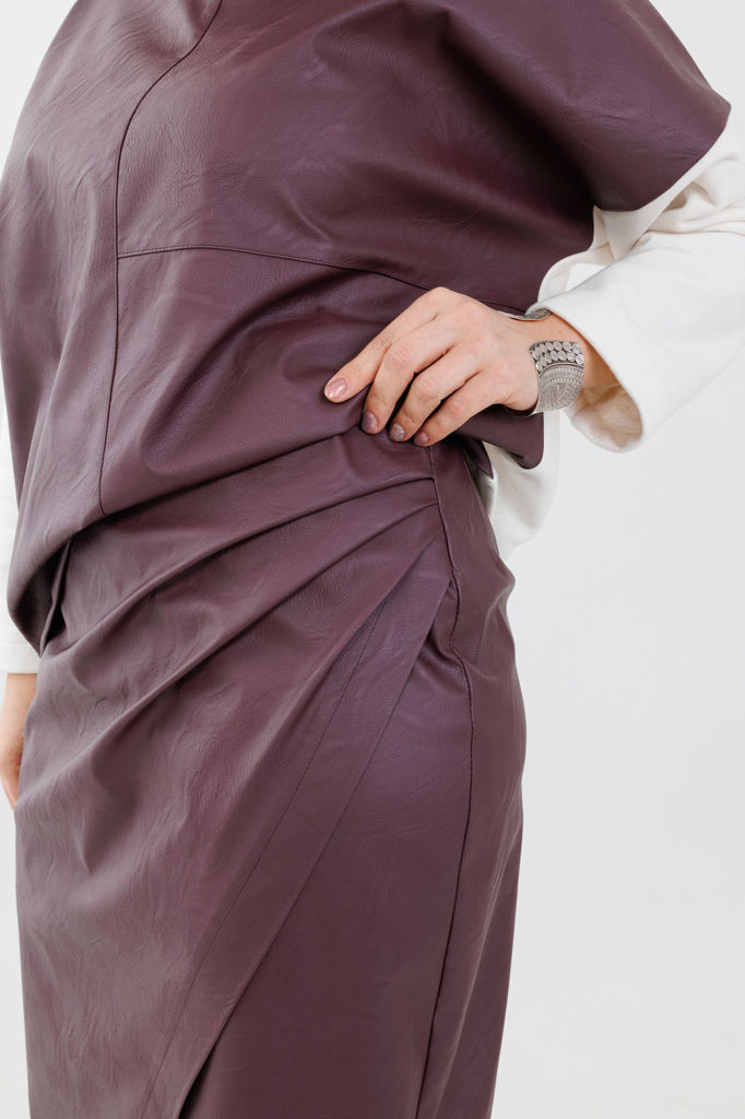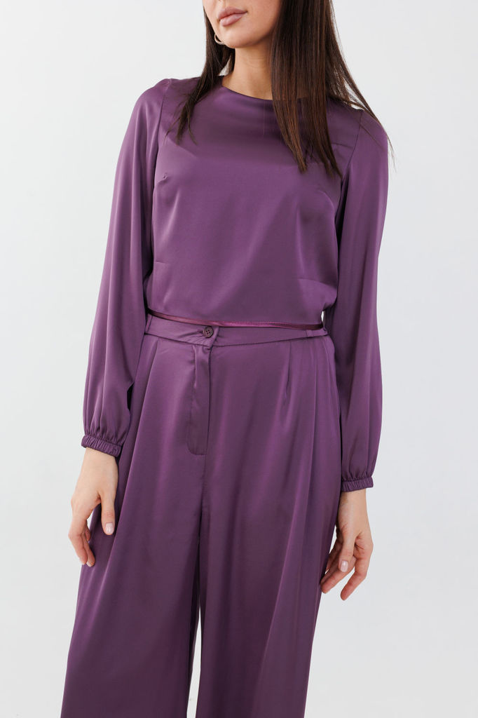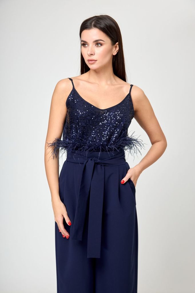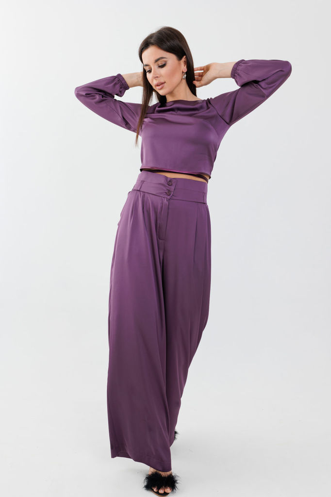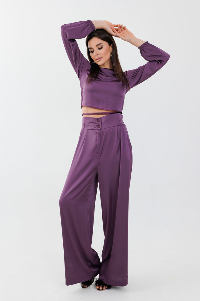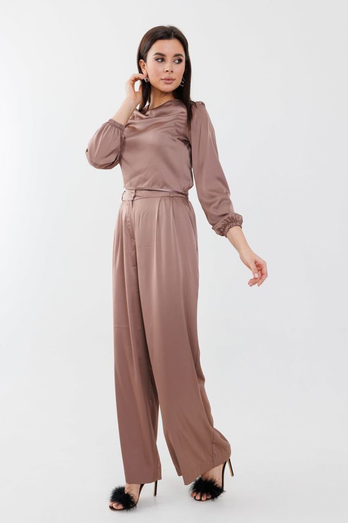 Состав: Вискоза-32%; ПЭ-65%; Эластан-3%; Сезон: Осень-Зима Рост: 164 Страна бренда: Беларусь Состав: Вискоза-32%; ПЭ-65%; Эластан-3%; Стильный женский комплект, состоит из блузы и брюк-юбки. Блуза пря... Показать описаниемого силуэта с эффектом жатки, что придаёт изделию особый стиль. Блуза с нагрудными выточками, рукав длиной ?, с манжетой, по бокам с небольшими разрезами (разрез 9 см). Перед блузки декорирован пришивной дизайнерской нашивкой. Брюки-юбка прямые, со складками по переду и спинке с эффектом жатки. Брюки-юбка на поясе, по бокам с резинкой, по спинке с застежкой на потайную молнию и пуговицу. В комплекте идет съемный кожаный пояс.