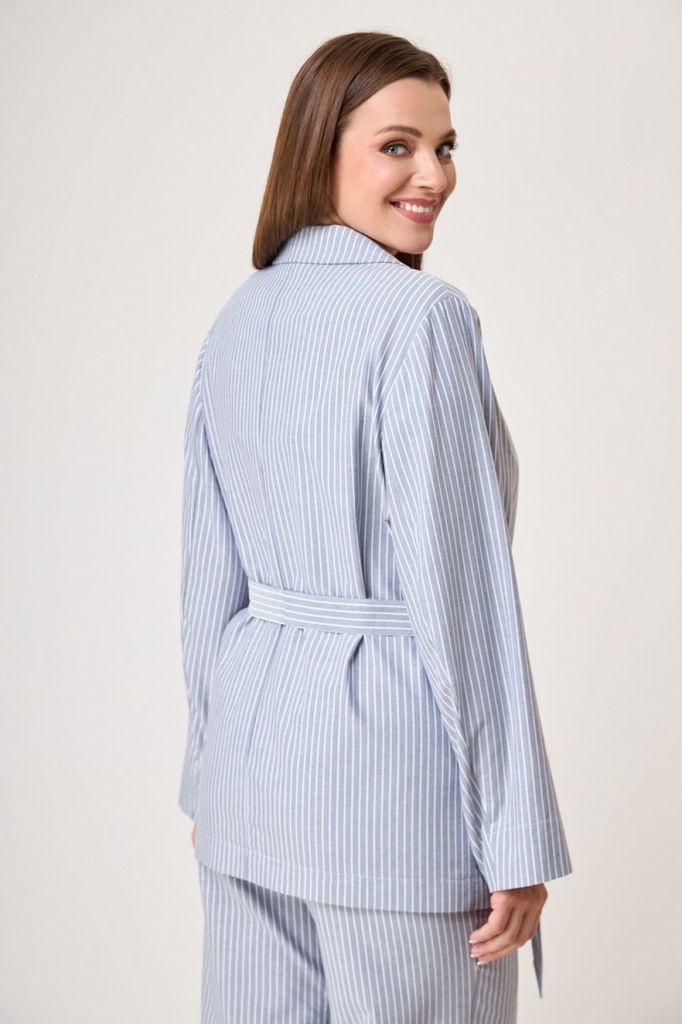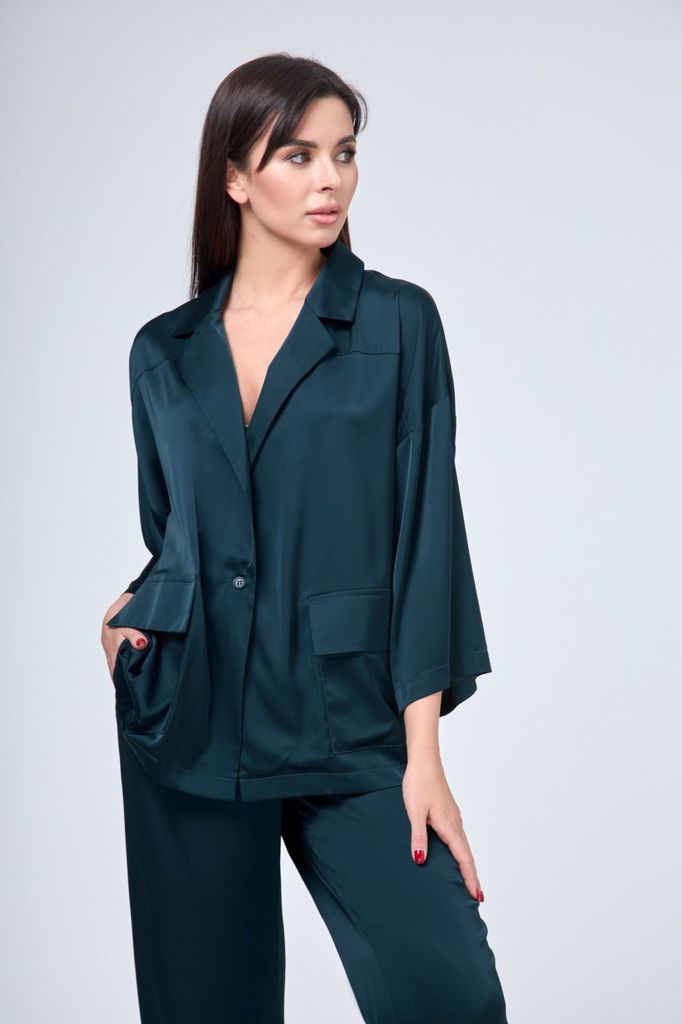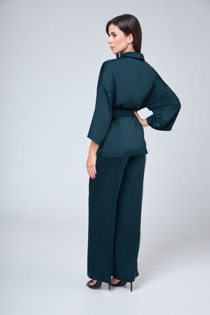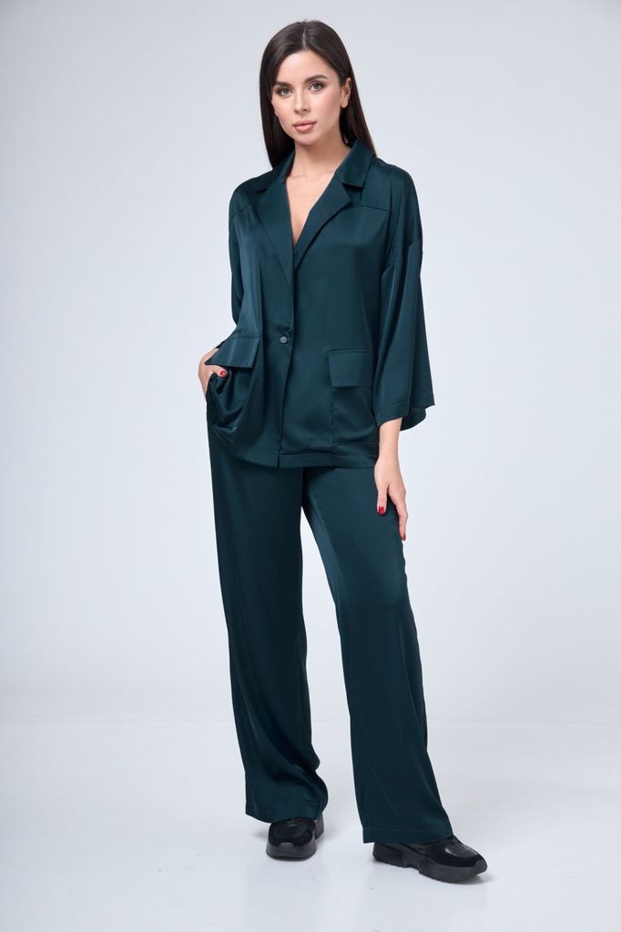 Состав: Вискоза-60%; ПЭ-40%; Сезон: Весна Рост: 164 Страна бренда: Беларусь Состав: Вискоза-60%; ПЭ-40%; Пижамный комплект для уверенных в себе женщин, которые смело могут пойти в нем, как на работу, ... Показать описаниетак и на свидание или прогулку. Жакет прямого силуэта, со спущенной линией плеча, рукав расширен по низу и укорочен, для вашего удобства. По переду накладные карманы, классический воротник с лацканом. Застежка на петлю пуговицу. Съёмный пояс декорирован. Брюки прямые расширенные к низу. Пояс на резинке, поэтому брюки будут на вас сидеть хорошо, вне зависимости от того, похудели ли вы или немного выросли в объемах. Цвет на фото может отличатся от цвета изделия в живую, из-за разницы освещения и цветопередачи экранов на которых просматривается изображение. Оставляя Ваш честный отзыв Будем благодарны за отзыв с фото. Вся необходимая информация о производителе указана на этикетке. Замеры: ОГ- объем груди; ОТ-объем талии; Об-объем бедер; ДИ-длина изделия; ДР-длина рукава. Размер 46 ОГ-116; ОТ-114; ДИ- 65; ДР- 34. ОТ-66; ОБ- 98; ДИ- 110. Размер 48 ОГ-120; ОТ-118;ДИ-65 ; ДР-34 . ОТ-70; ОБ- 102; ДИ- 110; Размер 50 ОГ-124; ОТ-122; ДИ-65 ; ДР-34 . ОТ-74; ОБ- 106; ДИ- 110; Размер 52 ОГ-128; ОТ-126; ДИ-65 ; ДР-34 . ОТ-78; ОБ- 110; ДИ- 110; Размер 54 ОГ-132; ОТ-130; ДИ- 65; ДР-34 . ОТ-82; ОБ-114; ДИ- 110;