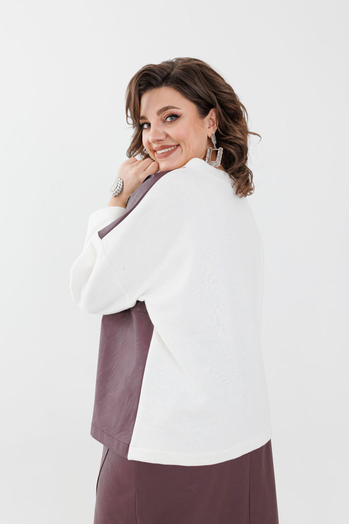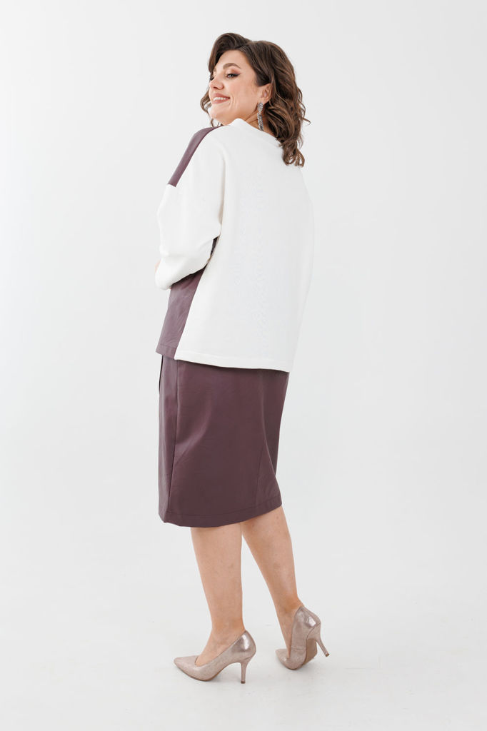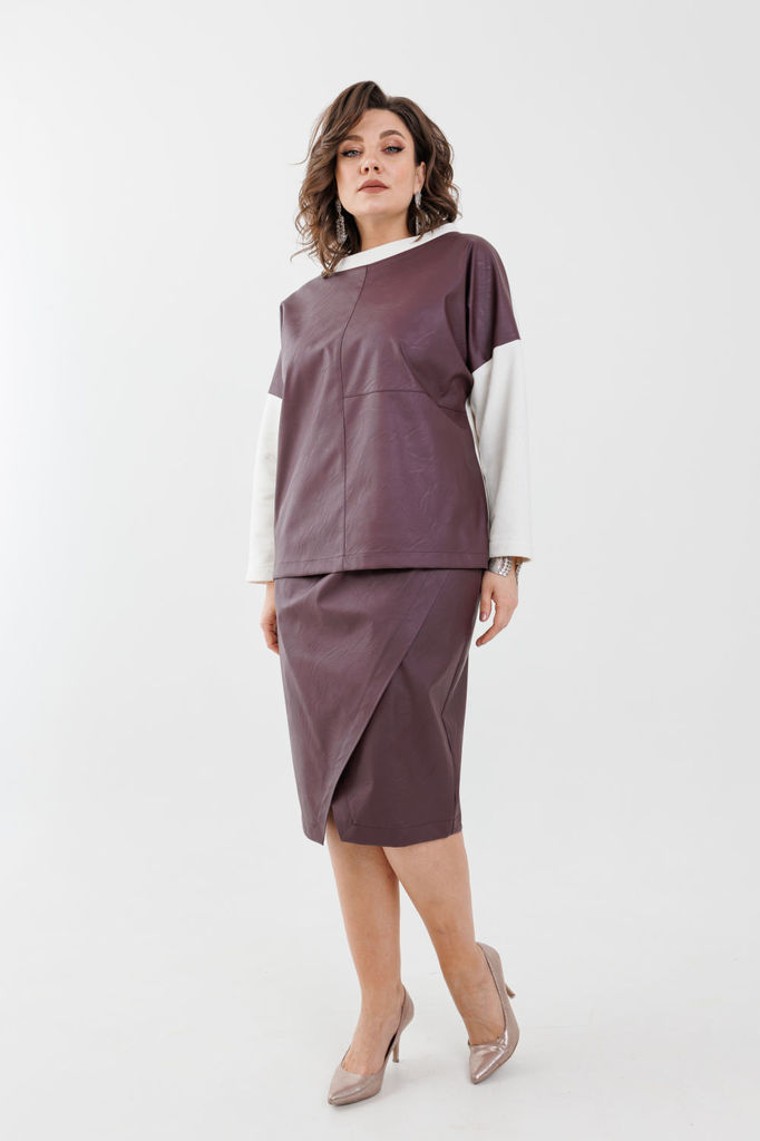 Состав: Джемпер- Вискоза-57%; ПЭ-43%; Юбка- Вискоза-57%; ПЭ-43%; Подкладка- Хлопок-100%; Сезон: Осень-Зима Рост: 164 Страна бренда: Беларусь Состав: Джемпер: Вискоза-57%; ПЭ-43%; Юбка: Вискоза-57%; ПЭ... Показать описание-43%; Подкладка: Хлопок-100%; Сочетание эко кожи и трехнитки создает эффектную игру текстур, а длина юбки до колена делает образ женственным и элегантным. Модный свитшот добавляет образу неповторимости и делает его стильным и смелым. Костюм можно носить вместе и по отдельности, в зависимости от настроения и события. Он идеально подойдет как для офиса, так и для неформальной вечеринки с друзьями. Независимо от того, в какой обстановке ты его наденешь, ты будешь выглядеть модно и стильно. И помни, что этот костюм можно сочетать как с каблуками, так и с кедами - так что твои возможности в нем бесконечны! Не упусти свой шанс и стань обладательницей этого модного костюма. Состав: Свитшот: вискоза 57% полиэстер 43% Юбка: вискоза 57% полиэстер 43% подкладка: хлопок 100% Замеры: Размер 54: Юбка: ОТ-90; ОБ-110; ДИ-72.5; Свитшот: ОГ-126; ОТ-123; ОБ-124; ДИ-68; ДР-37.5; Размер 56: Юбка: ОТ-94; ОБ-114; ДИ-73; Свитшот: ОГ-133; ОТ-129; ОБ-130; ДИ-69; ДР-35.5; Размер 58: Юбка: ОТ-98; ОБ-118; ДИ-74; Свитшот: ОГ-141; ОТ-135; ОБ-136; ДИ-69.5; ДР-34;
