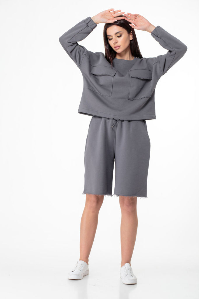 Состав: Хлопок-100%; Сезон: Лето Рост: 164 Страна бренда: Беларусь Состав: Хлопок-100%; Костюм из футера – идеальный выбор для любого типа фигуры! Костюм в стиле оверсайз, состоит из свитшота и шорт. ... Показать описаниеСвитшот объемный, прямого силуэта На передней части выполнена отрезная кокетка, в шве обработаны накладные карманы с клапанами. Низ свитшота на кулиске, ширину можно регулировать по вашему желанию. Линия плеча удлинённая, рукава длинные, с притачной манжетой на резинке. Горловина обработана бейкой из кашкорсе в тон изделия. Шорты удлиненные, посадка на талии, на эластичном поясе с резинкой внутри, обработаны боковые карманы. Изюминкой комплекта являются открытые срезы, добавляющие небрежного шика образу. Выполнен в нескольких оттенках. Замеры: Рост фотомодели 171 см. Размер фотомодели – 44 ОГ-обхват груди; ОТ-обхват талии; ДИ-длина изделия; ДР-длина рукава (от выреза горловины). Размер 42 Свитшот: ОГ-110; ОТ-106; ДИ-50,5; ДР-67,5. Шорты: (ОТ резинка в сборе/ОТ резинка растянута): ОТ-54/70; ОБ-104; ДИ-52. Размер 44 Свитшот: ОГ-114; ОТ-110; ДИ-51; ДР-68. Шорты: (ОТ резинка в сборе/ОТ резинка растянута): ОТ-58/74; ОБ-108; ДИ-53. Размер 46 Свитшот: ОГ-118; ОТ-114; ДИ-51,5; ДР-68,5. Шорты: (ОТ резинка в сборе/ОТ резинка растянута): ОТ-62/78; ОБ-112; ДИ-53. Размер 48 Свитшот: ОГ-122; ОТ-118; ДИ-52; ДР-69. Шорты: (ОТ резинка в сборе/ОТ резинка растянута): ОТ-66/82; ОБ-116; ДИ-54. Размер 50 Свитшот: ОГ-126; ОТ-122; ДИ-52,5; ДР-69,5. Шорты: (ОТ резинка в сборе/ОТ резинка растянута): ОТ-70/86; ОБ-120; ДИ-54. Размер 52 Свитшот: ОГ-130; ОТ-126; ДИ-53; ДР-70. Шорты: (ОТ резинка в сборе/ОТ резинка растянута): ОТ-74/90; ОБ-124; ДИ-55.