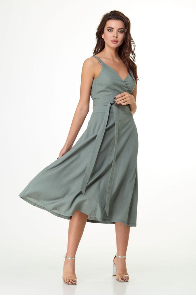 Состав: Вискоза-72%; Лён-28%; Сезон: Лето Рост: 164 Страна бренда: Беларусь Состав: Вискоза-72%; Лён-28%; Комплект состоит: юбка, топ с запахом. Выполнен из льняной ткани. Силуэт юбки, состоящей из че... Показать описаниетырёх клиньев, расширенных к низу, является классическим вариантом, который всегда актуален и подходит для любого возраста и комплекции. Юбка с притачным поясом, в области боковых швов на резинке. По передним половинкам юбки расположены боковые карманы. Застежка сзади на скрытую молнию. Топ завязывающийся на бретелях, выполнен с элементом запаха. Перед с вертикальными рельефами. Спинка с резинкой по низу. Идеально комплектуется с другими предметами гардероба. При съемке в образе использована майка AnelliStyle белая – 504. Замеры: Рост фотомодели 171 см. Размер фотомодели – 46. ОГ-обхват груди; ОТ-обхват талии; Об-обхват бедер; ДИ-длина изделия. Размер 46 Топ: ОГ-92; ОТ-74; ДИ-37 Юбка: ОТ-74; ОБ-106; ДИ-78 Размер 48 Топ: ОГ-96; ОТ-78; ДИ-38 Юбка: ОТ-78; ОБ-110; ДИ-79 Размер 50 Топ: ОГ-100; ОТ-82; ДИ-39 Юбка: ОТ-82; ОБ-114; ДИ-80 Размер 52 Топ: ОГ-104; ОТ-86; ДИ-40 Юбка: ОТ-86; ОБ-118; ДИ-81
