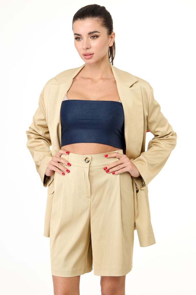 Состав: Вискоза-72%; ПЭ-24%; Эластан-4%; Сезон: Лето Рост: 164 Страна бренда: Беларусь Состав: Вискоза-72%; ПЭ-24%; Эластан-4%; Комплект состоит: жакет, кюлоты . Выполнен из ткани высокого качества, в... Показать описание составе которой-натуральное вискозное волокно. Жакет прямого силуэта, двубортный с отложным воротником и лацканами. По переду функциональные карманы с клапанами. Втачные рукава. Спинка со средним швом. Выполнен на подкладке. Атмосфера 90-х по прежнему актуальна, а это значит, что кюлоты длиной выше колена в тренде. Свободный крой с притачным поясом, боковыми карманами. Предметы комплекта: жакет и кюлоты, которые могут быть самостоятельно применены в сочетании с вашим гардеробом. При съемке для образа использован топ Anelli-Laurel 544. Замеры: Рост фотомодели 171 см. Размер фотомодели – 44. ОГ-обхват груди; ОТ-обхват талии ,Об-обхват бедер; ДИ-длина изделия; ДР-длина рукава. Размер 50 Жакет: ОГ-104; ОТ-102; ОБ-110; ДИ-74; ДР-59 Шорты: ОТ-84; ОБ-110; ДИ-50 Размер 52 Жакет: ОГ-108; ОТ-104; ОБ-114; ДИ-75; ДР-60 Шорты: ОТ-88; ОБ-114; ДИ-50 Размер 54 Жакет: ОГ-112; ОТ-108; ОБ-118; ДИ-76; ДР-61 Шорты: ОТ-92; ОБ-118; ДИ-51 Размер 56 Жакет: ОГ-116; ОТ-112; ОБ-122; ДИ-77; ДР-62 Шорты: ОТ-96; ОБ-122; ДИ-51