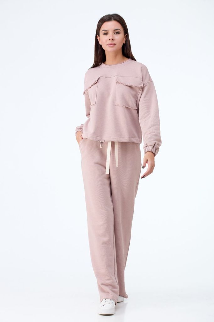 Состав: Хлопок-80%; Эластан-20%; Сезон: Осень-Зима Рост: 164 Страна бренда: Беларусь Состав: Хлопок-80%; Эластан-20%; Костюм из трикотажного полотна Трехнитки - петли идеальный выбор для любого типа ф... Показать описаниеигуры! Костюм в стиле оверсайз, состоит из свитшота и брюк . Свитшот объемный, прямого силуэта На передней части выполнена отрезная кокетка, в шве обработаны накладные карманы с клапанами. Низ свитшота на кулиске, ширину можно регулировать по вашему желанию. Линия плеча удлинённая, рукава длинные, с притачной манжетой на резинке. Горловина обработана бейкой . Брюки прямые посадка на талии, на эластичном поясе с резинкой внутри, обработаны боковые карманы. Изюминкой комплекта являются открытые срезы, добавляющие небрежного шика образу. Выполнен в нескольких оттенках. Замеры: Рост фотомодели – 171 см. размер фотомодели – 44 ОГ- обхват груди; ОТ-обхват талии; ОБ-обхват талии; ДИ-длина изделия(1- Свитшот, 2-брюки); ДР-длина рукава. Пояс на резинке тянется. Размер 42. ОГ-116;ОТ-60/100; ОБ-100; ДИ-54/115; ДР-55. Размер 44. ОГ-120;ОТ-64/104; ОБ-104; ДИ-54/115; ДР-55. Размер 46. ОГ-124;ОТ-68/108; ОБ-108; ДИ-54/115; ДР-55. Размер 48. ОГ-128;ОТ-72/112; ОБ-112; ДИ-54/115; ДР-55. Размер 50. ОГ-132;ОТ-76/116; ОБ-116; ДИ-54/115; ДР-55. Размер 52. ОГ-136;ОТ-80/120; ОБ-120; ДИ-54/115; ДР-55. Размер 54. ОГ-140;ОТ-84/124; ОБ-124; ДИ-54/115; ДР-55. Размер 56.