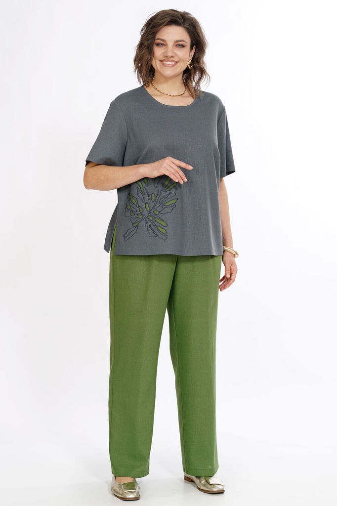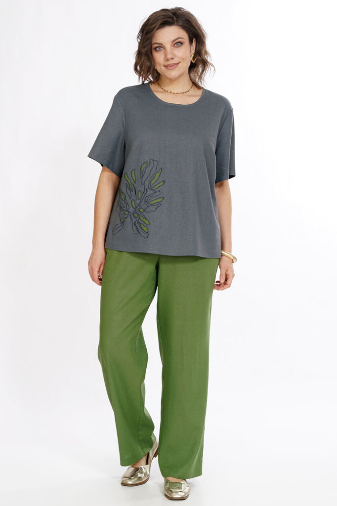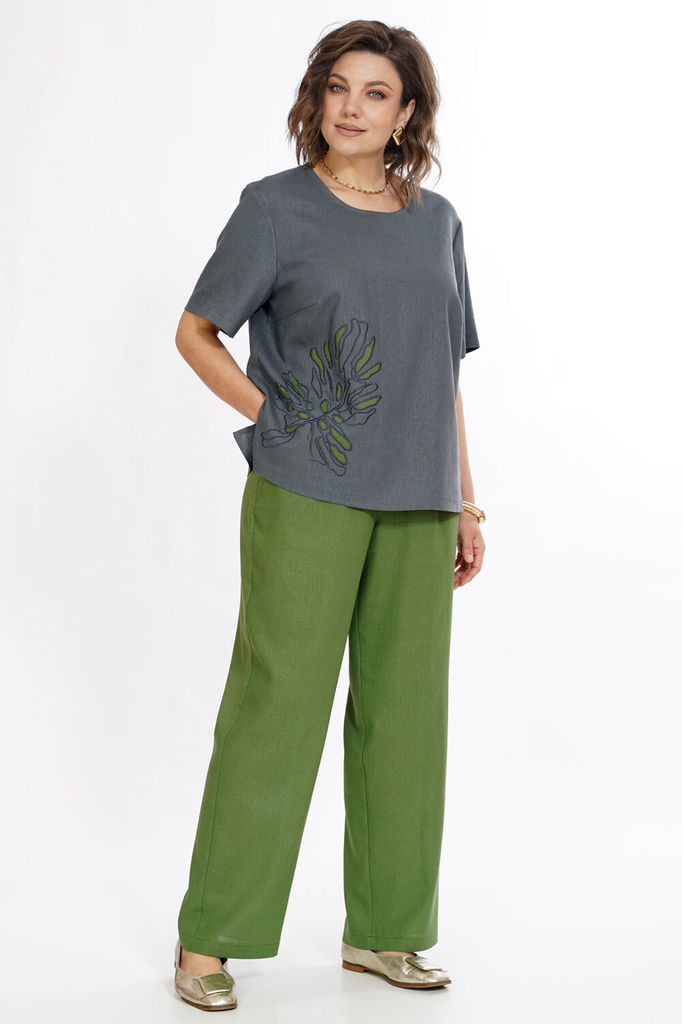 Состав: Вискоза-45%; Лён-55%; Сезон: Лето Рост: 164 Страна бренда: Беларусь Состав: Вискоза-45%; Лён-55%; Блуза прямого силуэта, с разрезом по горловине спинке и застёжкой на навесную петлю и пуговицу... Показать описание. Перед с нагрудными выточками по правой стороне аппликация (вышивка). Рукава втачные, одношовные, короткие. Брюки свободного, прямого силуэта с притачным поясом на резинке. Передние части с боковыми, косыми карманами.