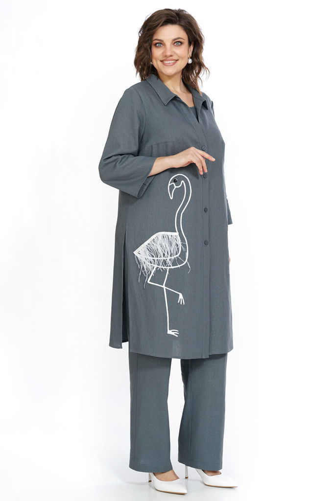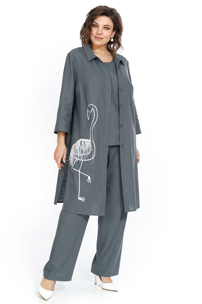 Состав: Вискоза-45%; Лён-55%; Сезон: Лето Рост: 164 Страна бренда: Беларусь Состав: Вискоза-45%; Лён-55%; Блузон прямого силуэта с застёжкой по притачной планке на петли, пуговицы, по боковым с разрез... Показать описаниеами. Перед с нагрудными выточками, по правой части печать со съёмной тесьмой с перьями фиксируемая на пришивных кнопках. Рукава втачные, одношовные, длиной ?. Воротник стояче-отложной. Блуза полуприлегающего силуэта, с фигурной линией низа. Перед с нагрудными выточками. Брюки свободного, прямого силуэта, с притачным поясом на резинке. Передние части с боковыми, косыми карманами.