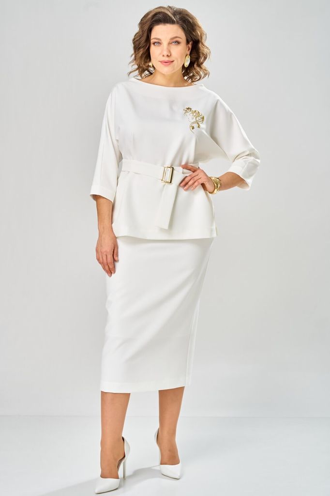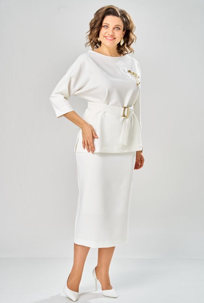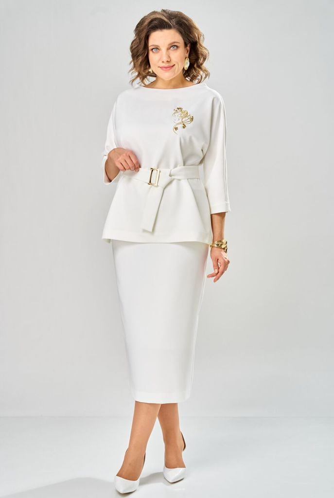 Состав: ПЭ-94%; Спандекс-6%; Сезон: Весна Рост: 170 Страна бренда: Беларусь Состав: ПЭ-94%; Спандекс-6%; Костюм женский двухпредметный. Блузка прямого кроя со съёмным поясом, это стильно и удобно. Спо... Показать описаниекойная и женственная, она станет акцентом вашего гардероба. Свободный крой и рукава длины ? создают утонченный силуэт, который подчеркнет вашу фигуру. Дизайн блузки сочетает в себе классическую элегантность и модные тренды. Нежная дизайнерская вышивка добавляет образу легкости и изящества. Юбка-карандаш женская классического кроя, длиной миди. Юбка на притачном поясе частично с эластичной тесьмой, застёжка сзади на тесьму-молнию. Изделие на подкладке Таблица измерений изделия в готовом виде М 9091-1 Наименование измерений/размер 50 52 54 56 58 60 Ширина по линии груди блузка 57 59 61 63 65 67 Ширина по линии бёдер блузка 58 60 62 64 66 68 Длина блузки 68 68 68 68 68 68 Длина рукава от горловины 49 49 49 49 49 49 Ширина по линии талии юбка 37(41) 39(43) 41(45) 43(47) 45(49) 47(51) Ширина по линии бёдер 55 57 59 61 63 65 Длина юбки 92 92 92 92 92 92 Допустимые отклонения +-1-1,5 см