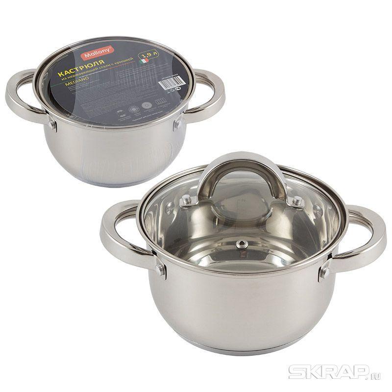 Кастрюля с крышкой PROMO 1,25л, 17,5*7,5см, нерж.сталь (0,3мм), однослойное дно 104613 Mallony Вопросы по товару