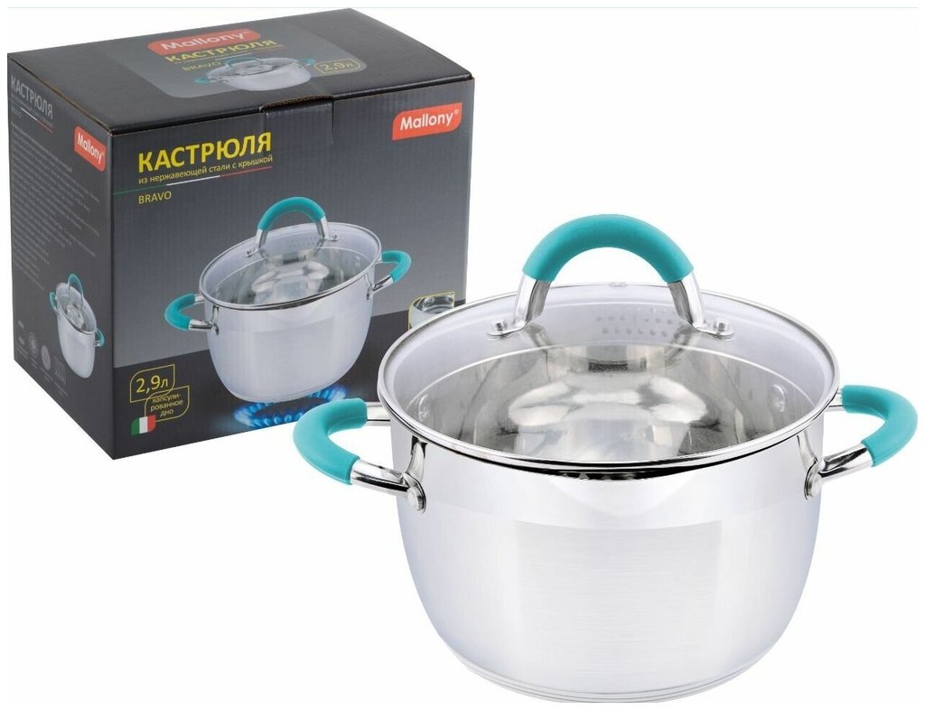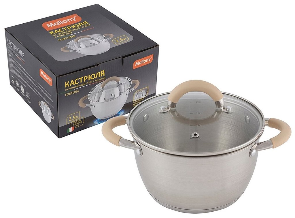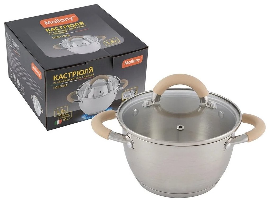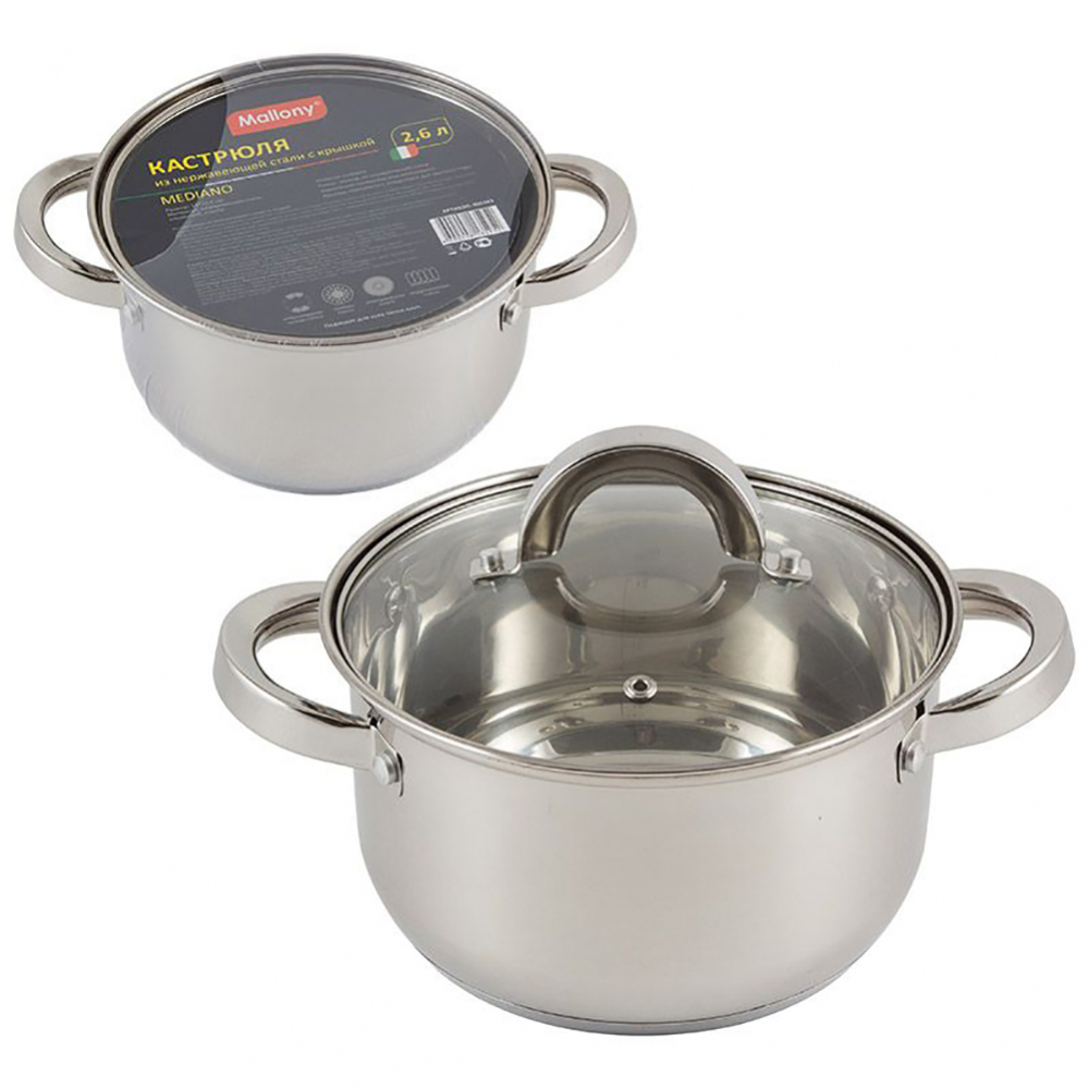 Кастрюля Felicita с крышкой, 3,9л, 20*12,5см, нерж.сталь, жаропрочное стекло 9388 Mallony Вопросы по товару