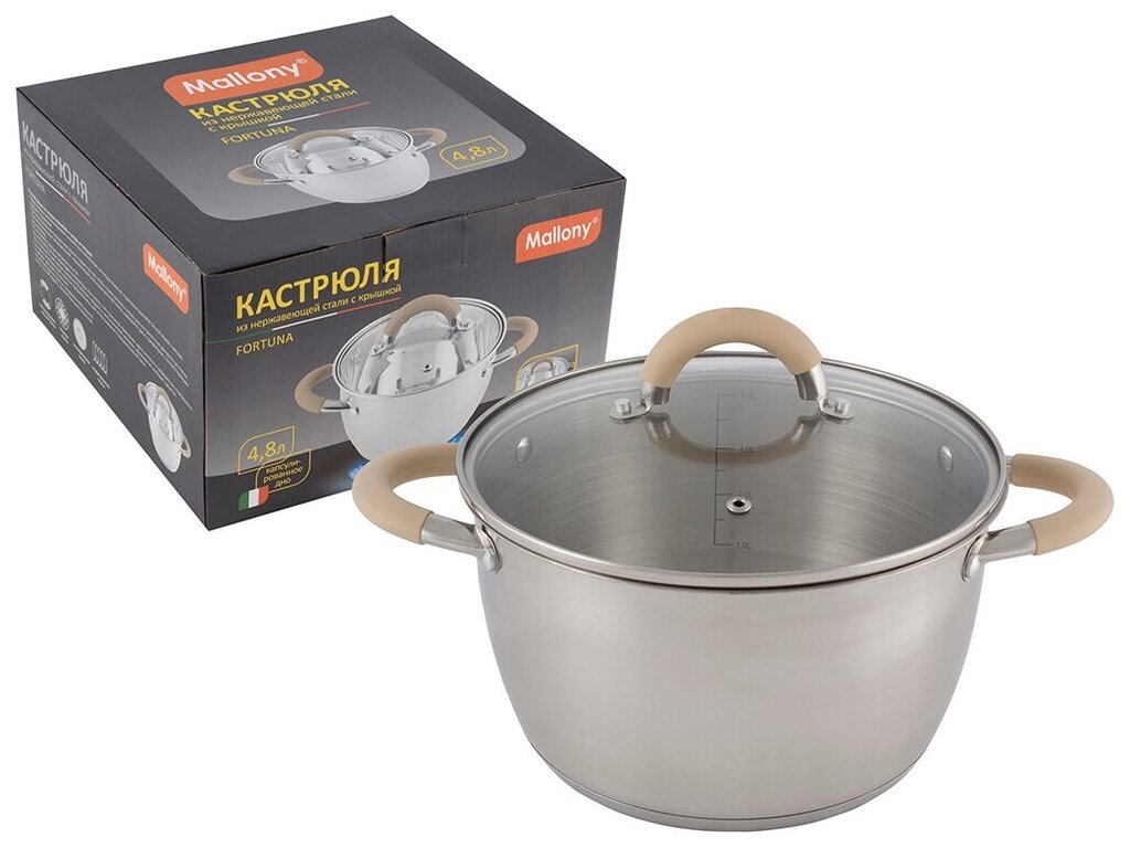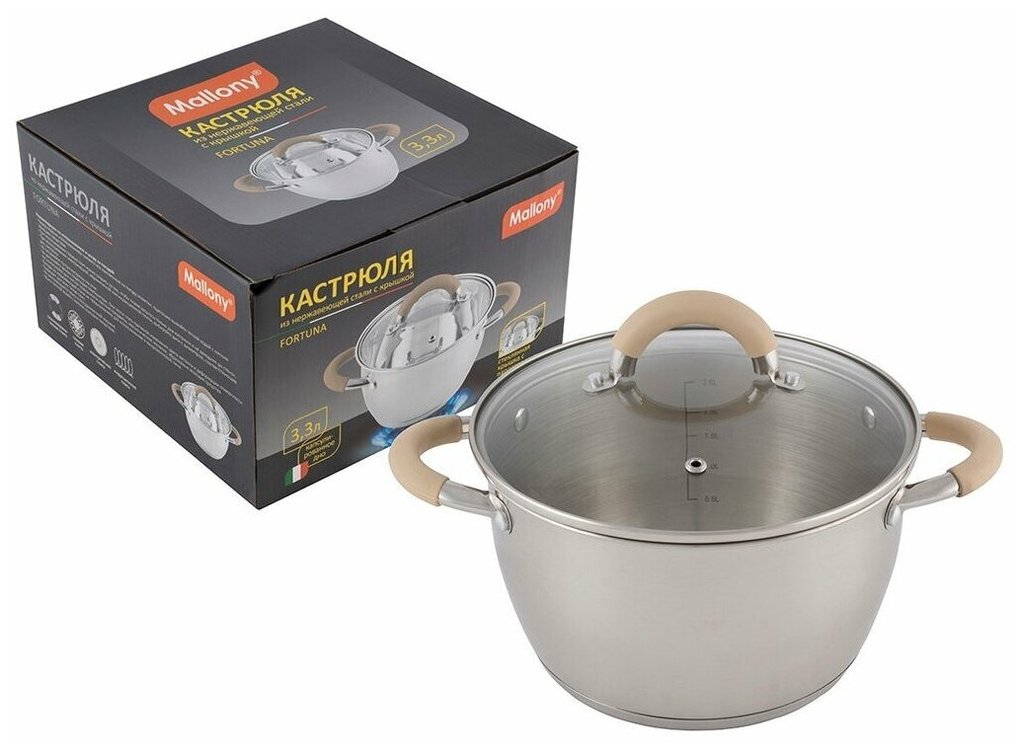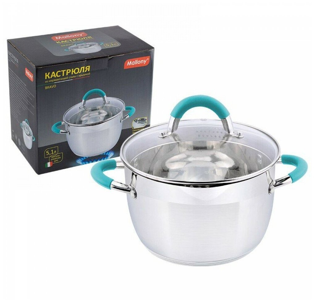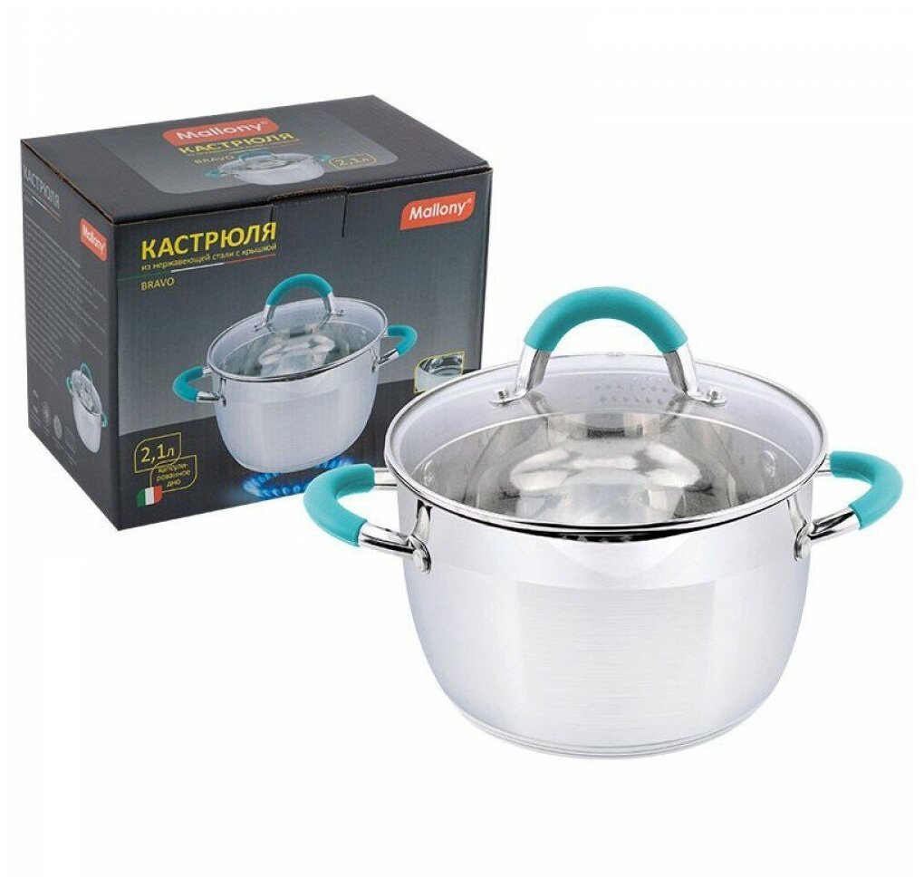 Кастрюля Felicita с крышкой, 3,9л, 20*12,5см, нерж.сталь, жаропрочное стекло 9388 Mallony Вопросы по товару