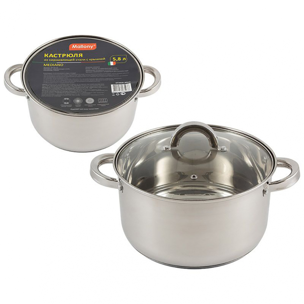 Кастрюля с крышкой PROMO 3,6л, 25,5*10см, нерж.сталь (0,3мм), однослойное дно 104616 Mallony Вопросы по товару